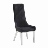 Experience Quality Dining By Bringing In This Contemporary Style Dining Chair Which Offers A Padded Seating Space With Vertically Stitched Details. Constructed From Metal Frame, It Is Upholstered With Black Faux Leather.