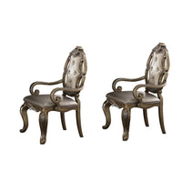 Add Traditional Style To Your Dining Room Ensemble With This Set Of 2 Dining Chairs. Made Up Of Wood, These Chairs Feature Carved Cabriole Front Legs, Leather Upholstered Padded Seats, Button Tufted Carved Oval Backrest And Scrolled Armrests.