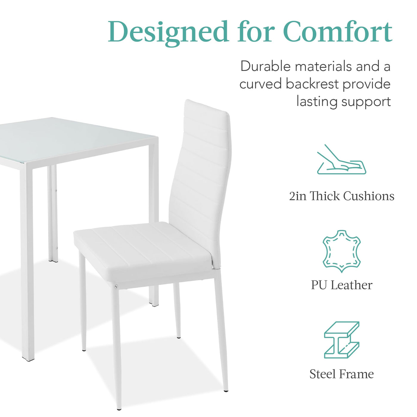 Best Choice Products 3-Piece Glass Dining Set, Modern Kitchen Table Furniture For Dining Room, Dinette, Compact Space-Saving W/Glass Tabletop, 2 Upholstered Pu Chairs, Metal Steel Frame - White
