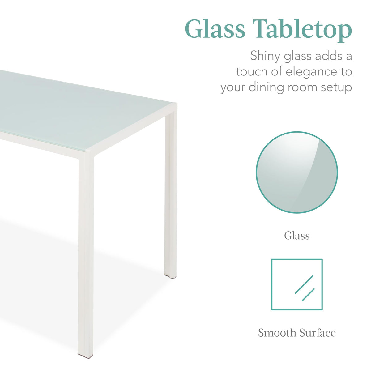 Best Choice Products 5-Piece Glass Dining Set, Modern Kitchen Table Furniture For Dining Room, Dinette, Compact Space-Saving W/Glass Tabletop, 4 Upholstered Pu Chairs, Metal Steel Frame - White