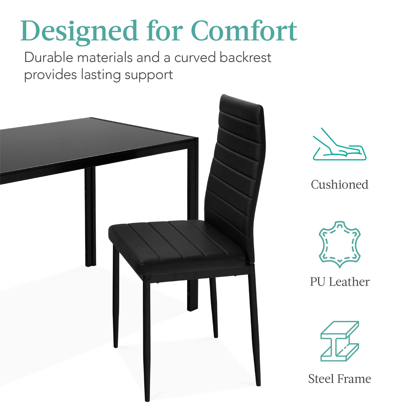 Best Choice Products 7-Piece Glass Dining Set, Modern Kitchen Table Furniture For Dining Room, Dinette, Compact Space-Saving W/Glass Tabletop, 6 Upholstered Pu Chairs, Metal Steel Frame - Black