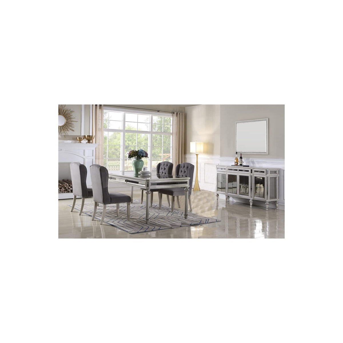 Add Class And Sophistication Into Any Dining Room With This Lovely Emory Distressed Cream With Antique Mirrored Dining Table. This Distressed Dining Table Comes With Beveled And An Antique Mirror Finish With A Distressed Cream Trimming. The Table Is 89 Inches Long And Can Fit Up To 8 Side Chairs.Features:Finish: Cream With Antique Finished Mirrormaterial: Solid Wood, Engineered Wood, Glassspecial Features: Item Is Made To Have An Antique And Distressed Finish.Includes One (1) Tableassembly Is Requiredantique Cream Finishspecifications:Table Dimensions: 89"L X 41"W X 31"Hproduct Weight: 211 Lbssurface Material: Solid Wood, Engineered Wood, Glass, Engineered Wood