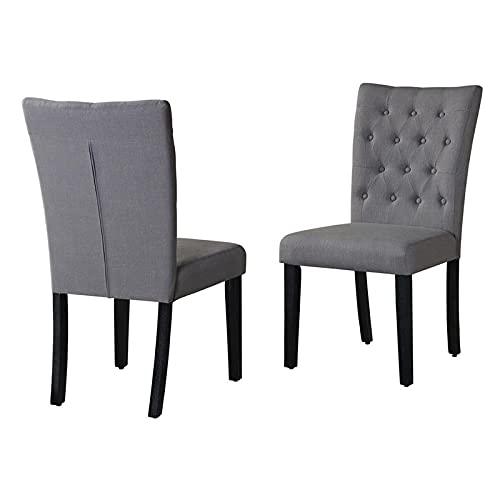 These Dining Chairs Are A Great Addition To Any Home. The Versatility Of The Chair Is Only One Of The Many Features, Including Its Upholstered Fabric For A Sleek, Antique Design. You Will Love These Chairs For Years To Come. Features: - Includes: Two (2) Dining Chairs - Material: Linen Fabric, Rustic Espresso Finish Leg - Color: Gray Linen - Minimal Assembly Required - Dimensions: 33 Inches H X 18 Inches L X 16 Inches W