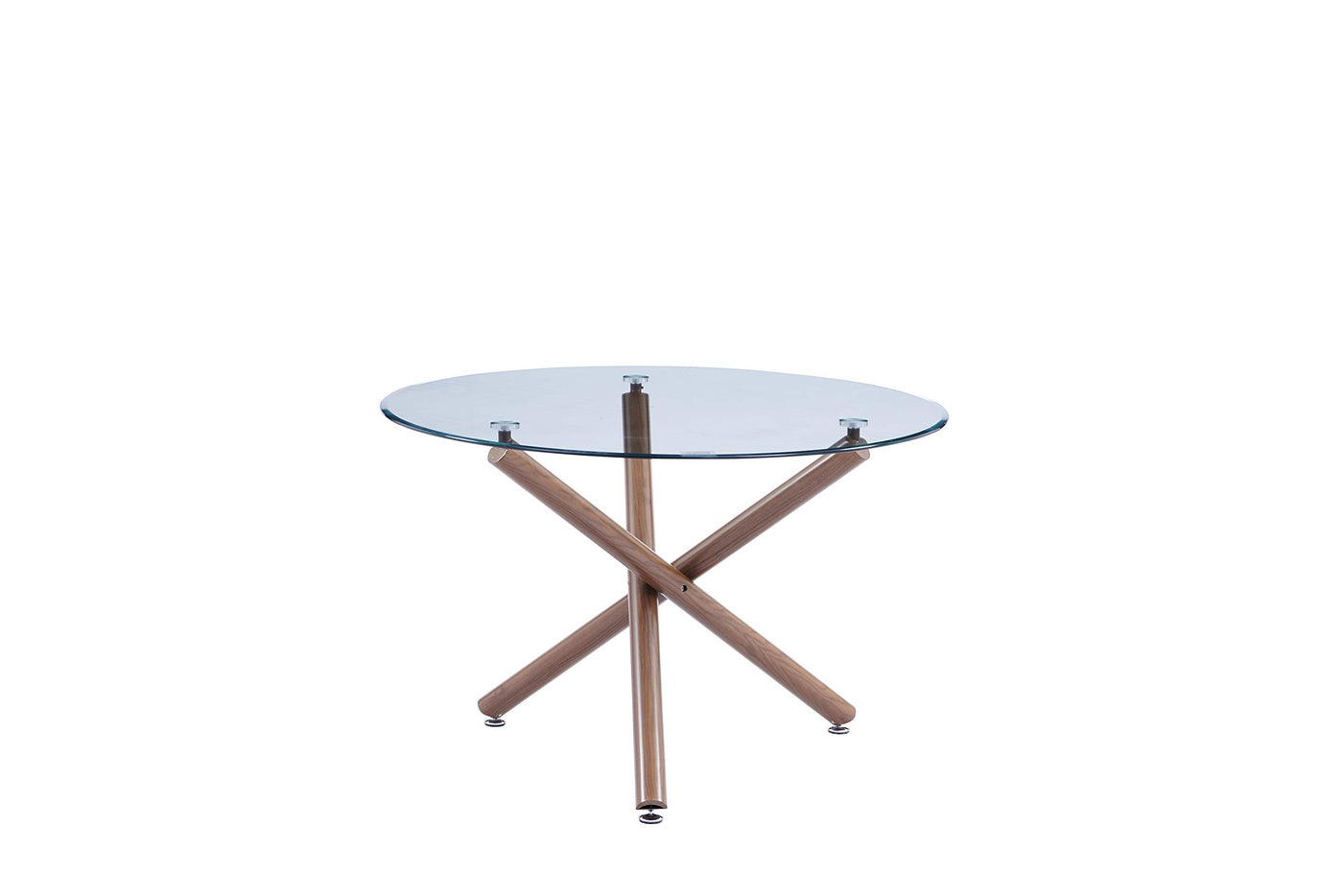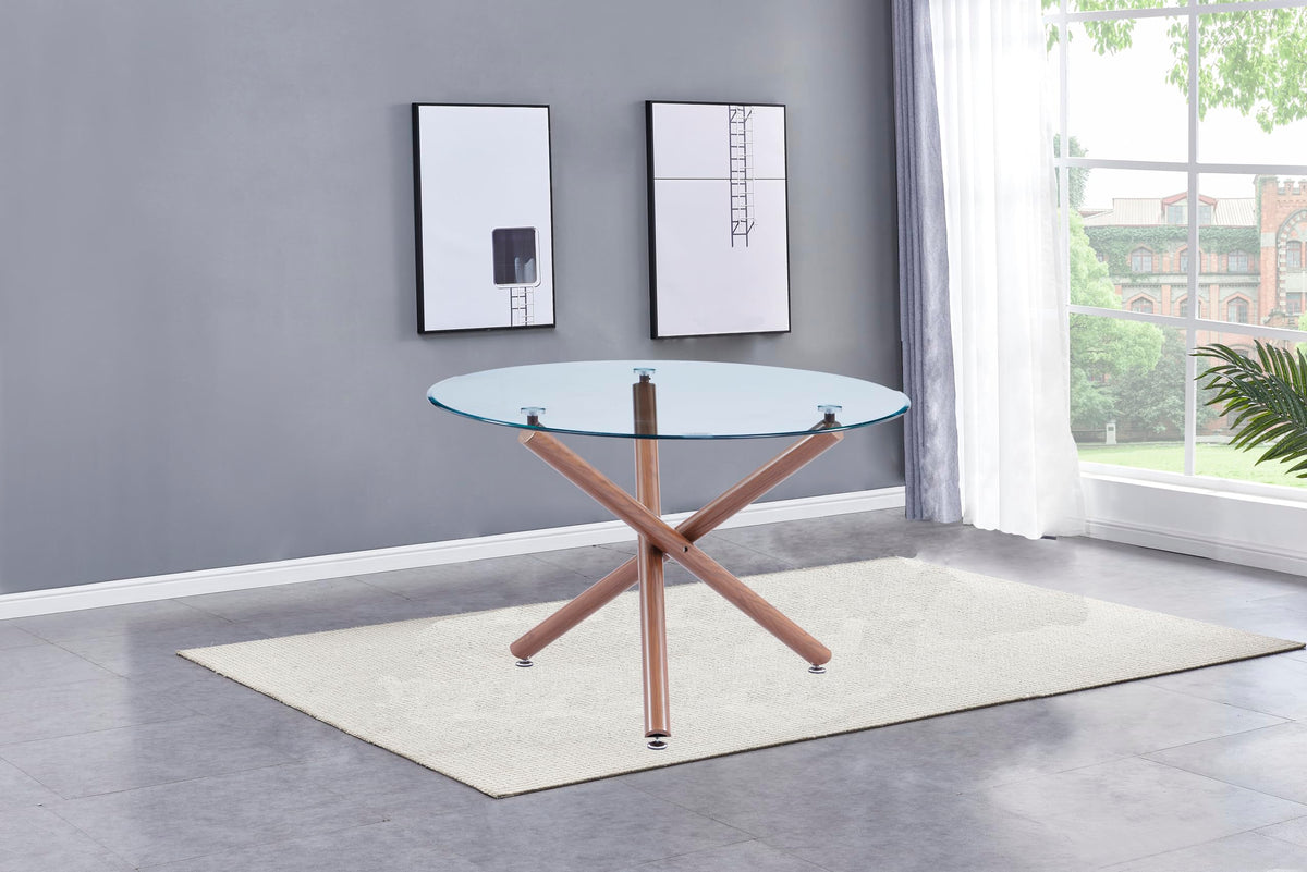 Create An Ultimate Functional And Stylish Dining Room With The Round Glass Table Dining Set. This Special Dining Set Was Designed From The Ground Up To Add A Sophisticated, Contemporary Touch To Your Dining Room. The Table Of This Set Features A Round Glass Table Top And Faux Wood Metal Base (Legs) Which Provide Strong Support, Ensuring Longevity, Strength And Beauty. Dining Chairs Are Upholstered In 2 Colors Options: Gray (D136-Sc2), Or Beige (D137-Sc2) Fabric. Features: Includes One (1) Dining Table, And Four (4) Dining Chairs Contemporary / Glam Style Glass Table Top Faux Wood Base (Legs) Materials: Glass, Faux Wood Sturdy Build Construction Chair Color: Gray Dimensions (Height X Length X Width): Dining Table: Overall: 30 Inches H X 45 Inches L X 45 Inches W Chair: Overall: 36 Inches H X 19 Inches H X 23 Inches W