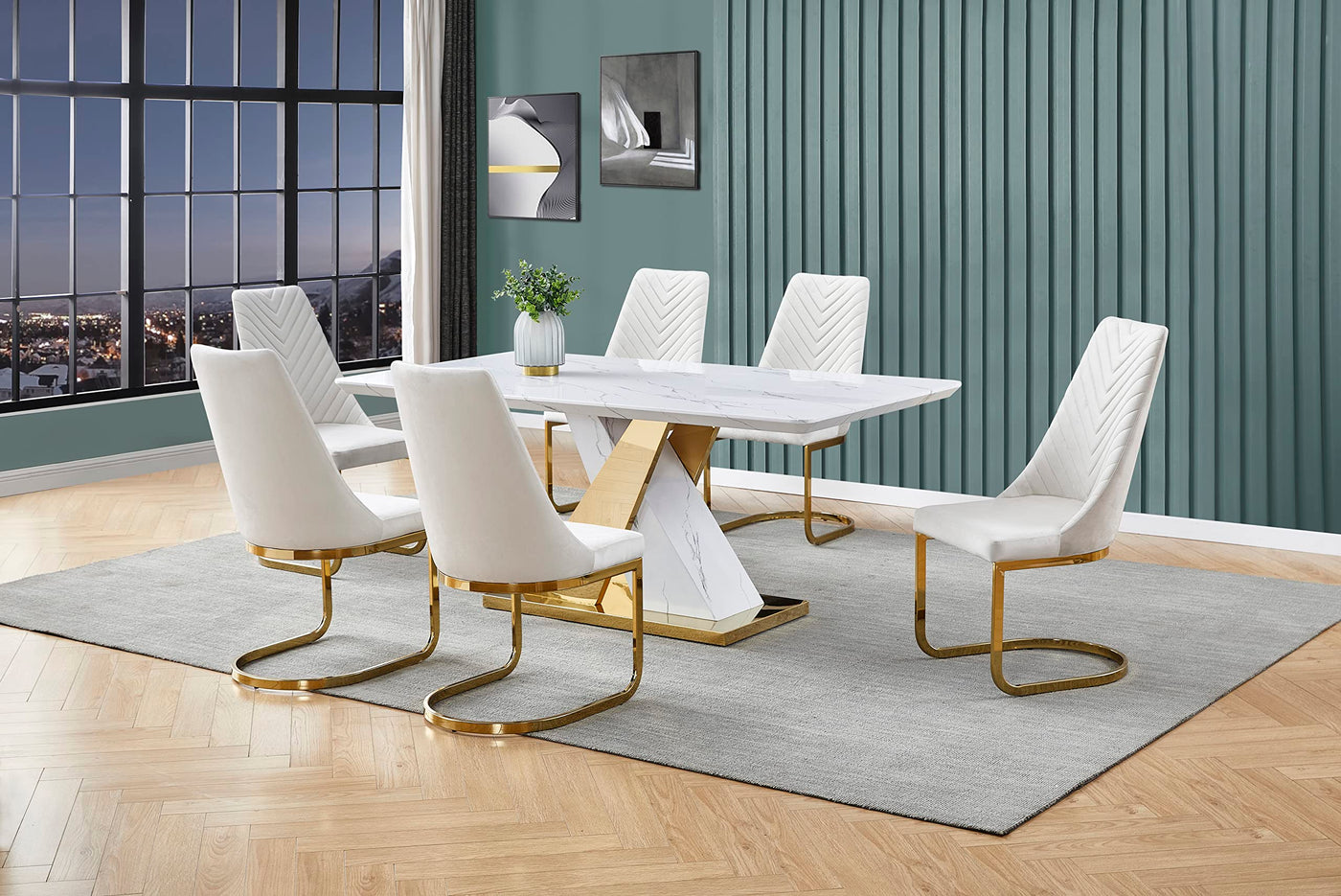 Best Quality Furniture D215-6SC177 Dining Set, White/Cream/Gold