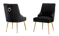 Velvet Upholstery | Set Of 2 | Gold Chrome Iron Legs | Black Seat Color