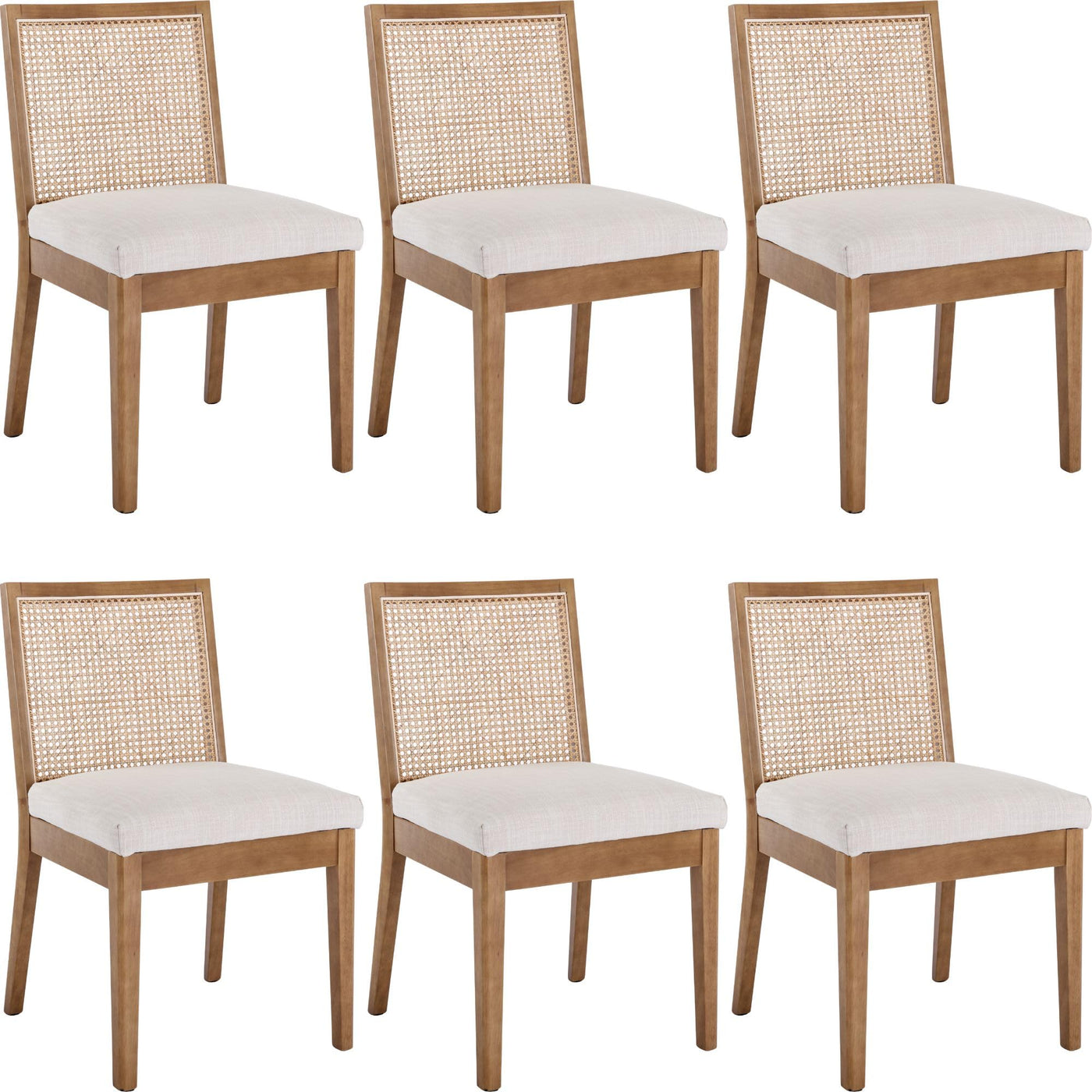 Bestano Farmhouse Rattan Dining Chairs Set Of 6 Natural Wood Dining Room Chairs Rectangle Cane Country Kitchen Chairs Upholstere