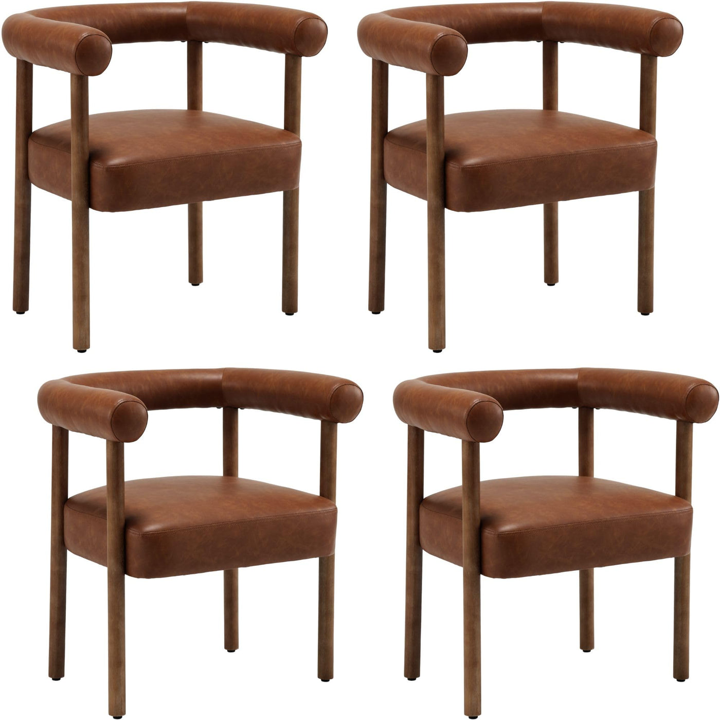 Bestano Mid-Century Modern Dining Chairs Set Of 4, Armrest Barrel Dining Chairs Side Accent Chairs With Curved Back, Upholstered