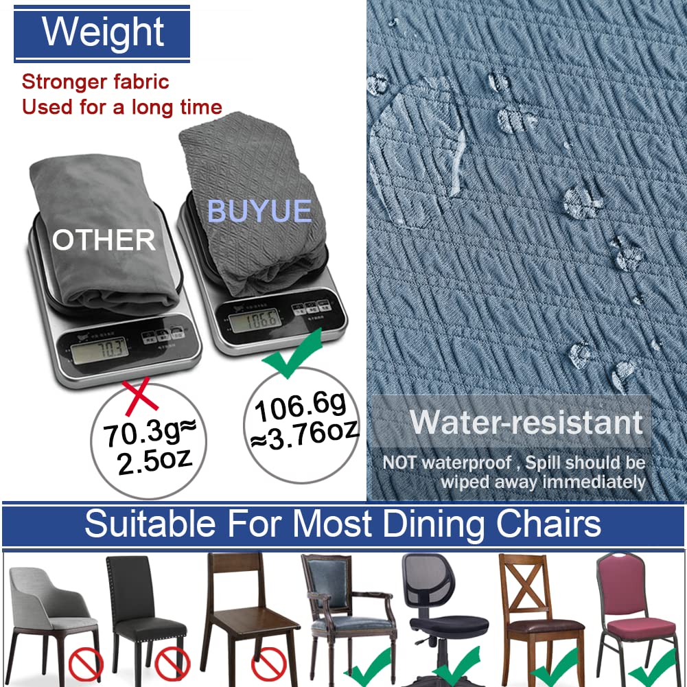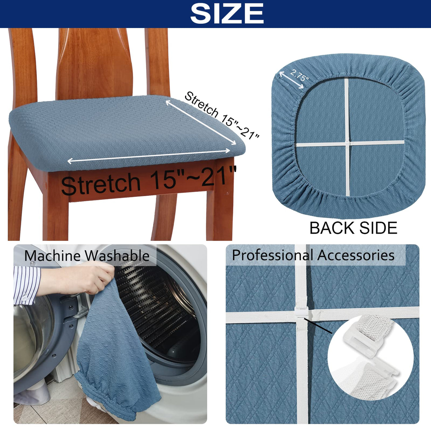 Buyue Dining Room Chair Seat Covers Set Of 4, Luxury Jacquard Fabric Stretch Washable Slipcover For Kitchen Seat Cushions, Sky Blue-4Pcs