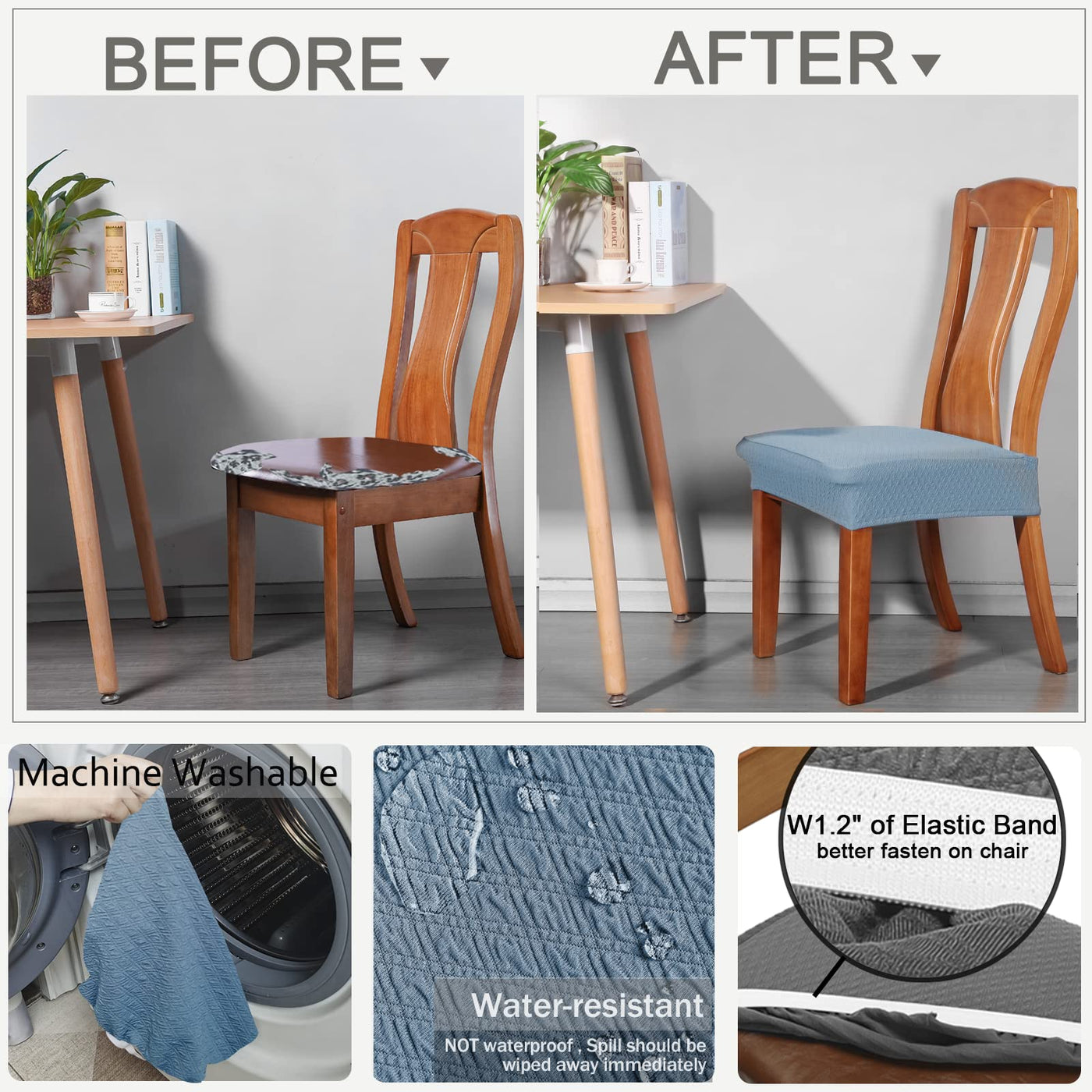 Buyue Fast Installation Dining Room Chair Covers Set Of 6, Luxury Stretch Jacquard Seat Slipcovers For Kitchen Armless Chairs, Rear Gapped- Sky Blue- 6