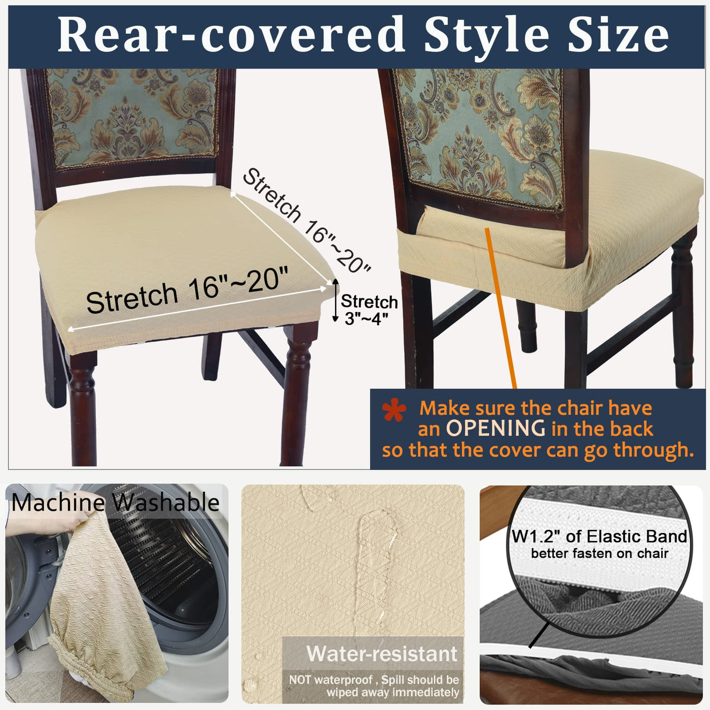 Buyue Dining Room Chair Covers Stretch Jacquard Chairs Easy Installation Upholstered Armless Chair Protectors, Rear-Covered, Set Of 4,Cream
