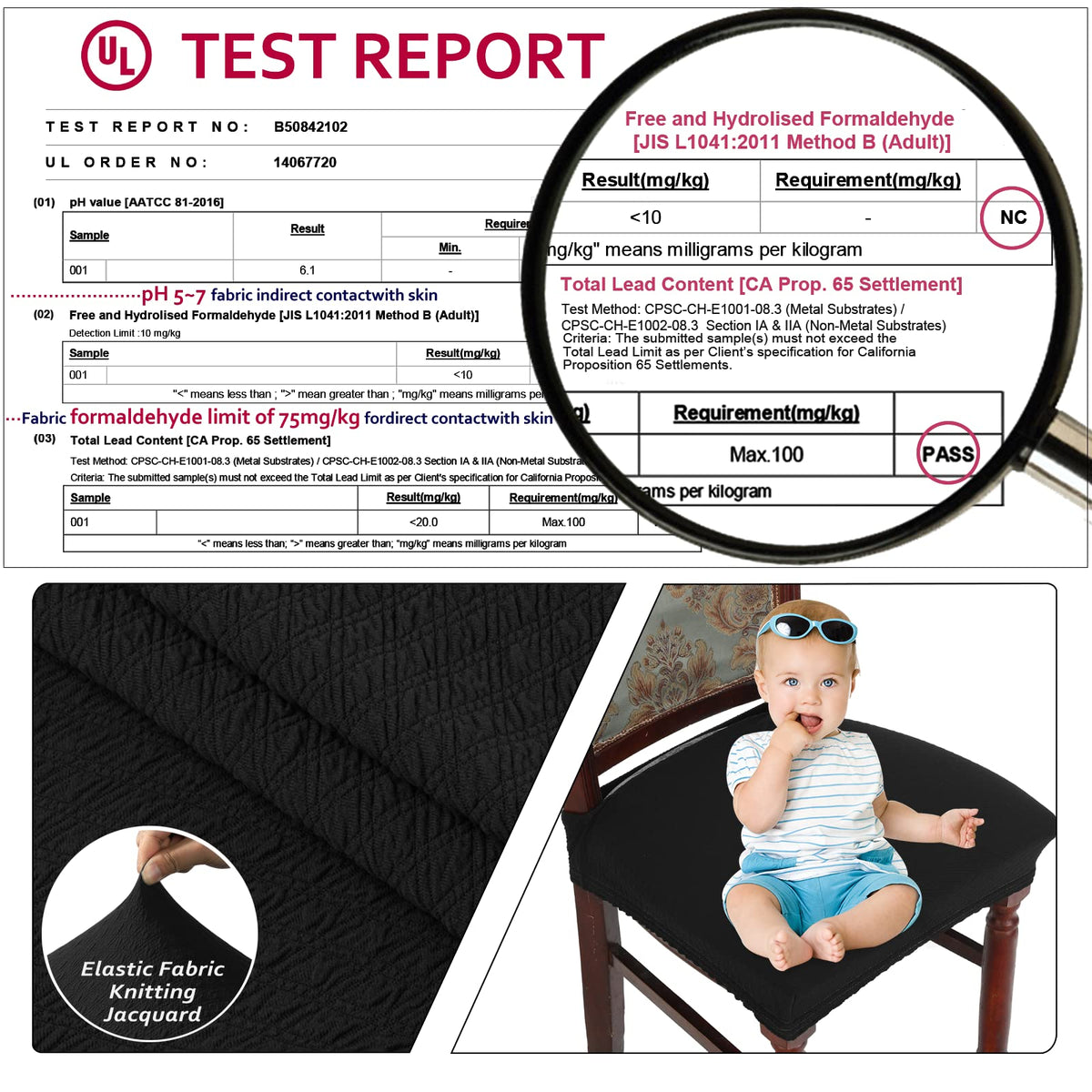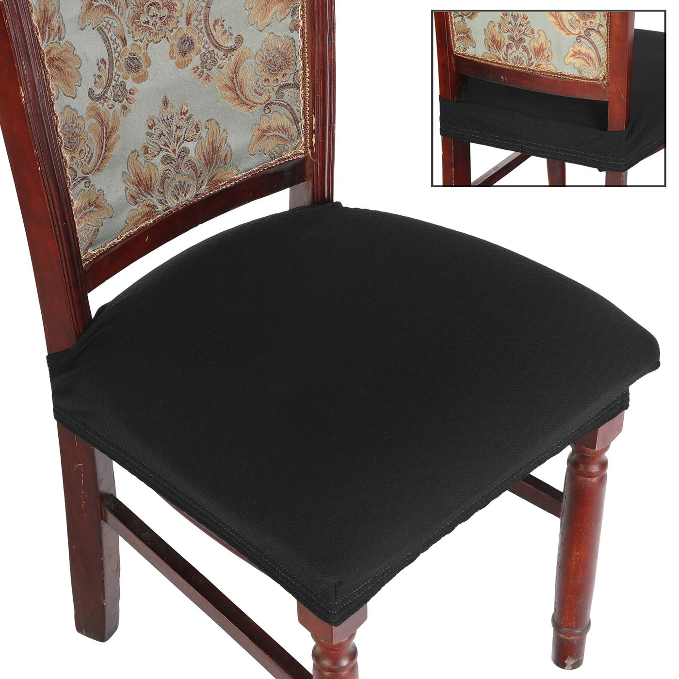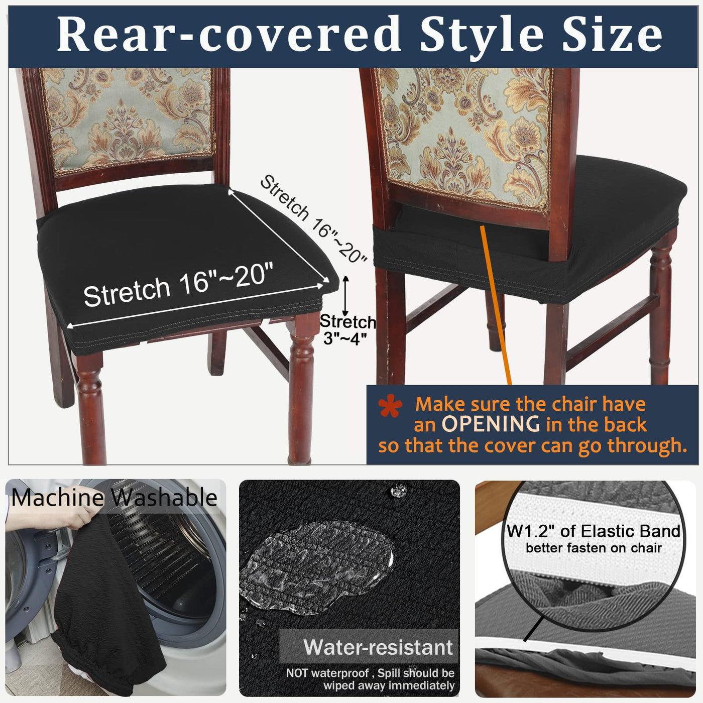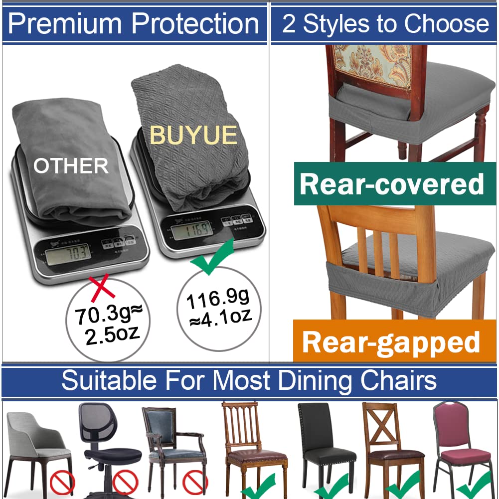 Buyue Dining Room Chair Covers Stretch Jacquard Chairs Easy Installation Upholstered Armless Chair Protectors, Rear-Covered, Set Of 6,Black