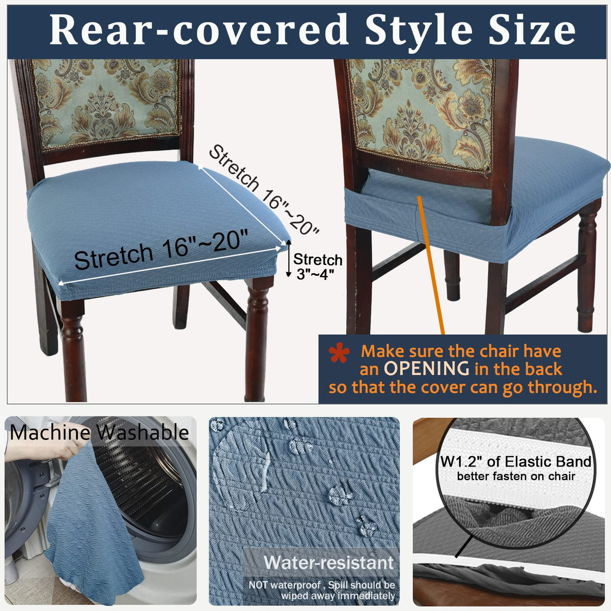 Buyue Dining Room Chair Covers Stretch Jacquard Chairs Easy Installation Upholstered Armless Chair Protectors, Rear-Covered, Set Of 6,Sky Blue