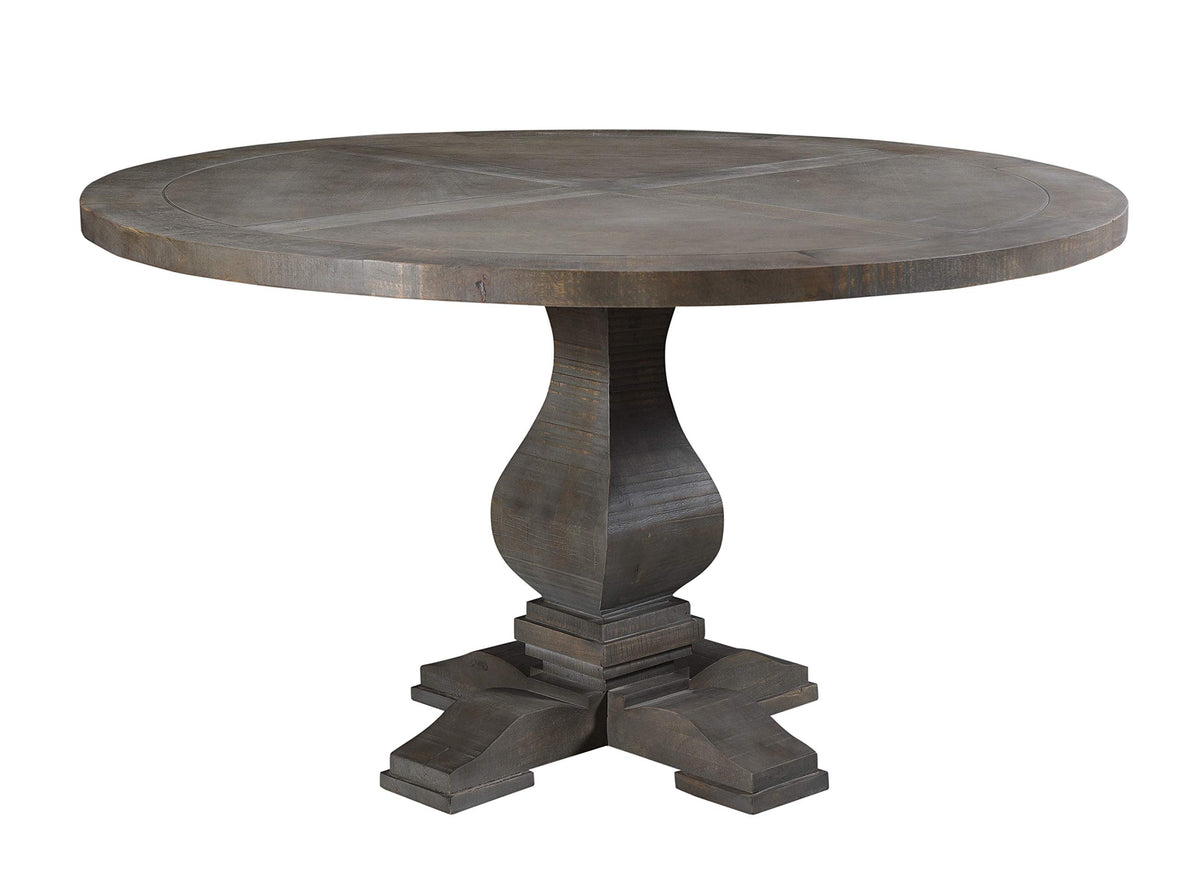 Cambridge presents unique, quality furniture handcrafted in India. Add a touch of the exotic to your home with this durable, yet beautiful, willoughby mango wood dining table. Featuring a thick, patterned tabletop and a turned pedestal with carved feet, this table will elevate any space from an eat-in kitchen to a formal dining room. Perfect for family dinners as well as game nights, this Dark Rustic table accommodates up to 6 people. Pair it with your favorite dining chairs and enjoy!