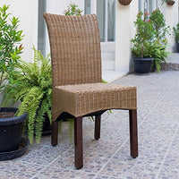 Campbell Salak Brown Rattan Wicker Stained Finish Dining Chairs with Mahogany Hardwood Frame (Set of 2)