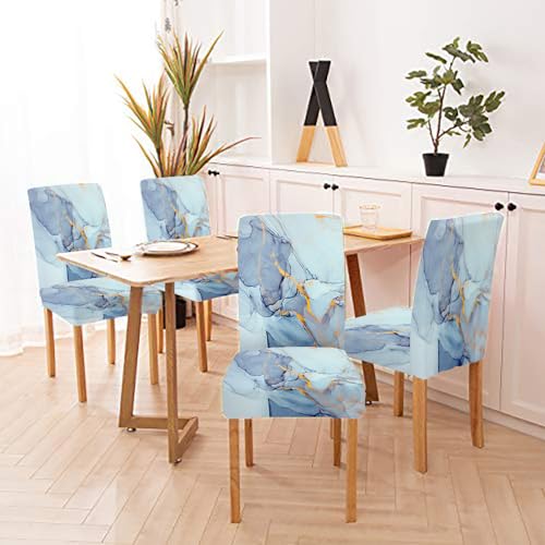 Capsceoll Marble Blue Abstract Printing Dining Chair Covers Set Of 4,Stretch Parsons Chair Slipcovers Universal Removable Washable Chair Seat Covers Protector For Dining Room,Kitchen,Hotel