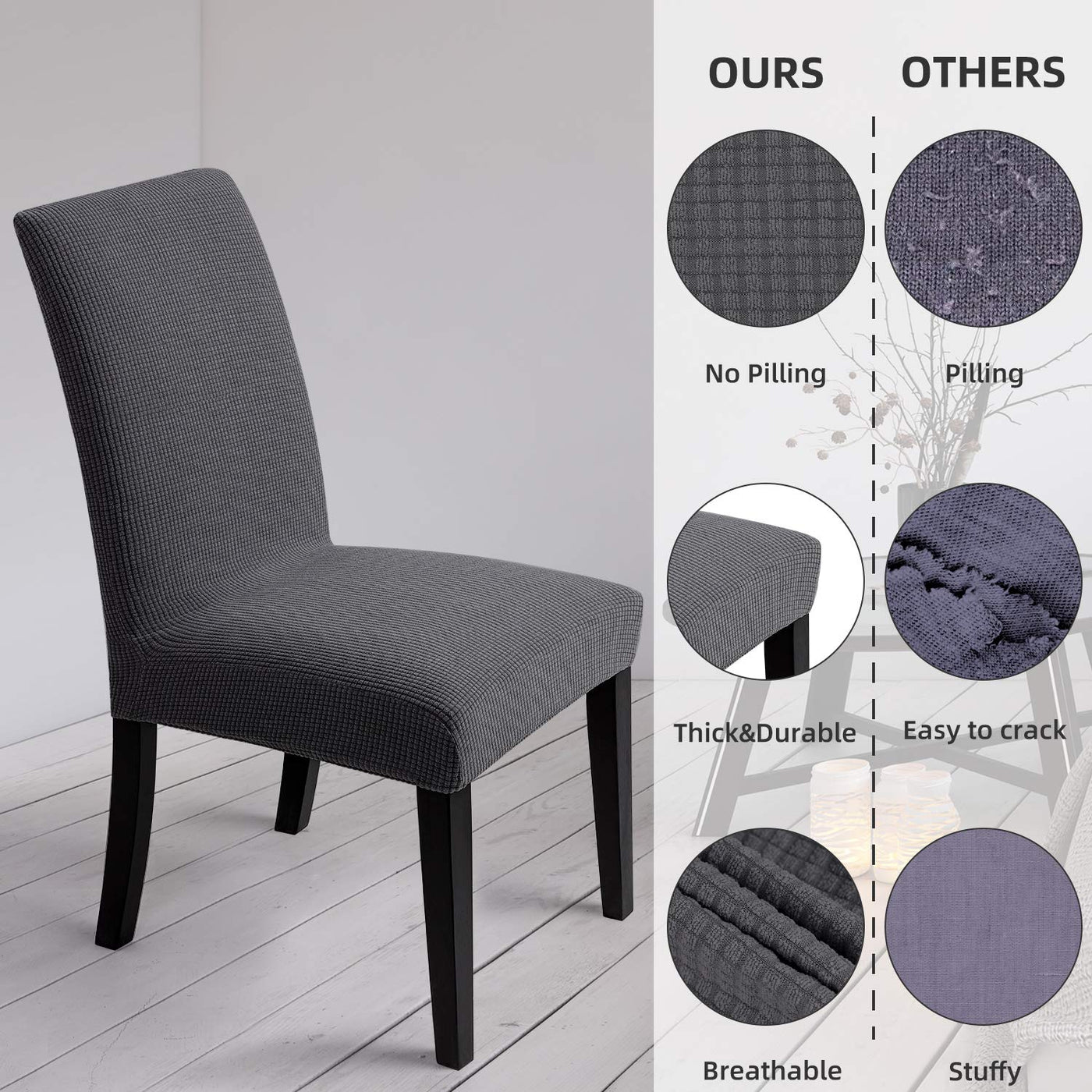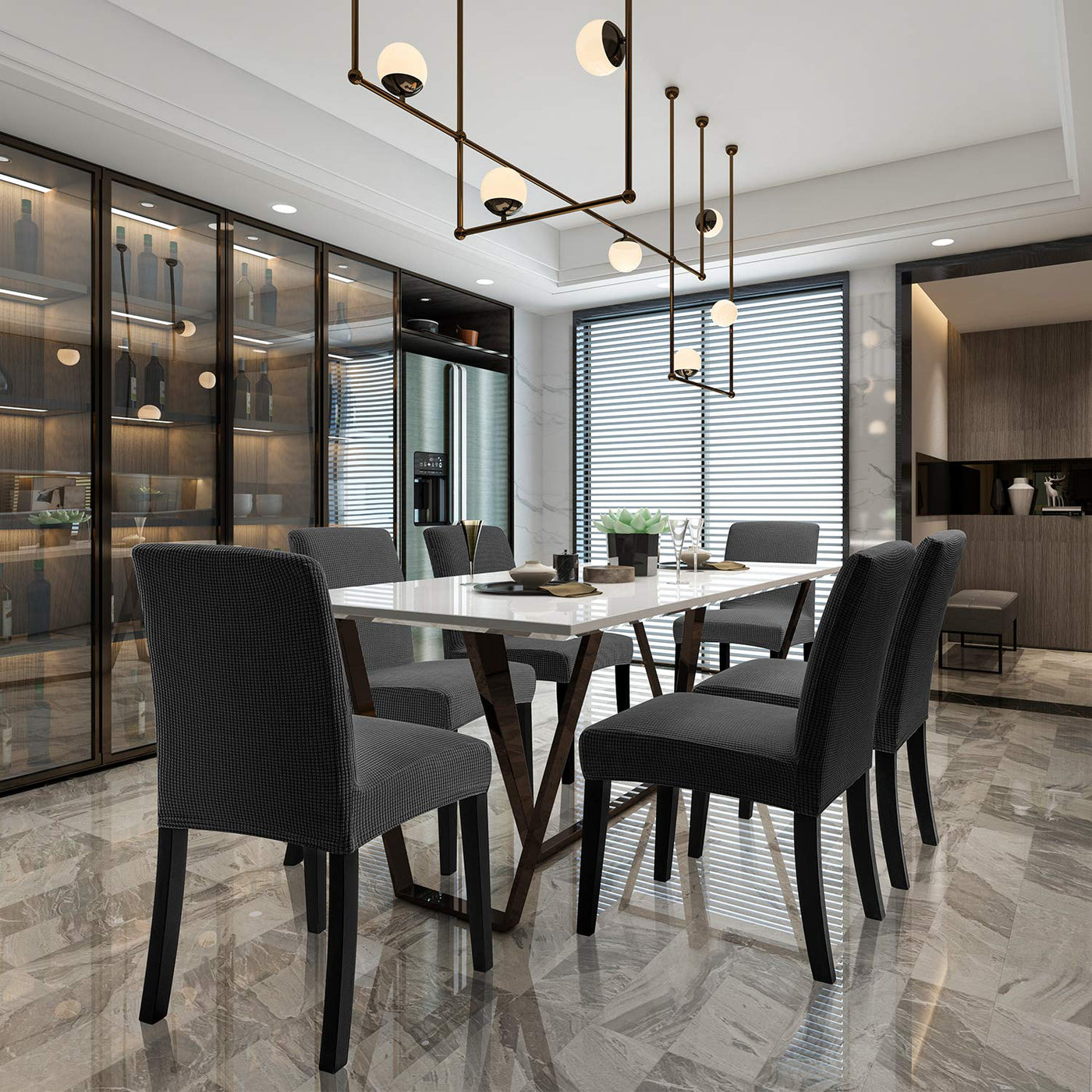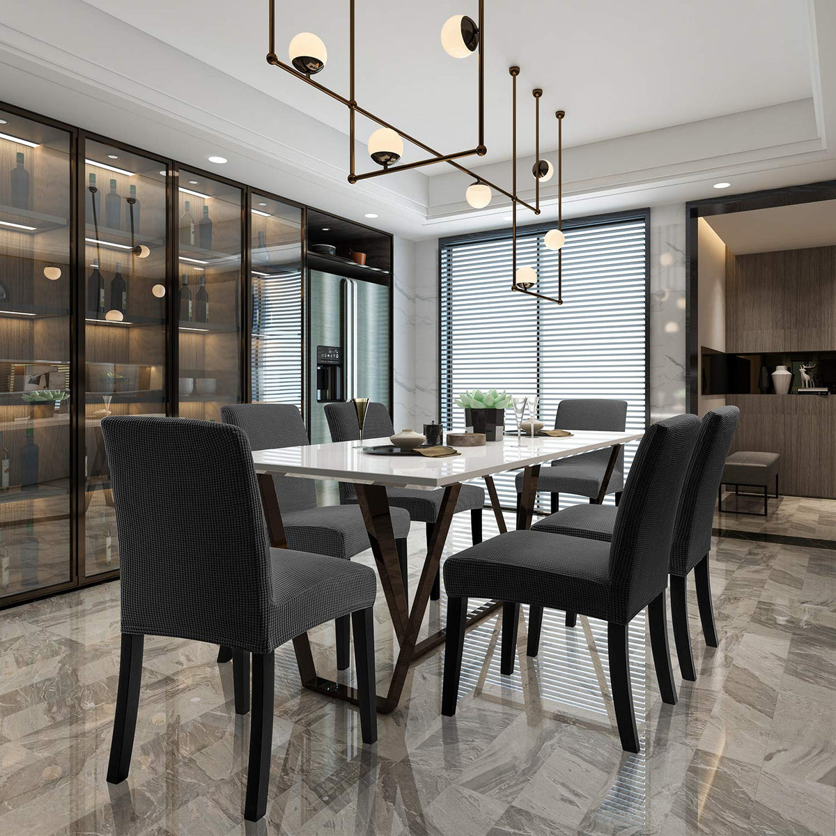 Chair Covers For Dining Room - Stretch Chair Slipcovers For Decorative Seat Protector Artrello Dining Chair Cover Fit For Most Of Parsons Chair, They Are Made Of Super Stretchable Material. They Will Let Your Old Or Ugly Chair Branded New One And More Beautiful And They Also Can Prevent Your Chair From Kids Scribble Or Pets Scratch And Bite. Easy To Cleaning And Wash, Machine Washable. Features: Made Of Durable And Super Stretch Jacquard Knitted Fabric With High-Quality Lycra, Softly Rich And Luxurious All-Around Elastic Provides A Clean, Sleek Look That Goes On Easily And Stays In Place. Suitable For All Seasons Fits Most Armless U.S Style Banquet, Parsons And Dining Chairs, Leather, Upholstered Or Non-Upholstered Freshen Up Your Chairs, Keep Them Clean And Protect Your Furniture From Dust, Spills, Stains, Wear, Fading And Tear, Prolong Durability Easy To Install: One Minute, It Will Change Your Old Furniture To Be Fresh And Modern Style. These Dining Chair Covers Can Be Used For Kitchen, Bedroom, Living Room Decoration, Restaurant, Cafe, Studio, Office Or Hotel, Meeting, Party, Christmas, Wedding Banquet, Celebration, Ceremony, Etc. Measure Guide To Make Sure Getting The Perfect Fitting, Please Measure Your Dining Chairs Before Ordering Fit Chair Back Width: 16-19 Inches, Chair Back Height: 19-26 Inches And Chair Seat Width And Depth 14-18 Inches And Thickness 1-4 Inches