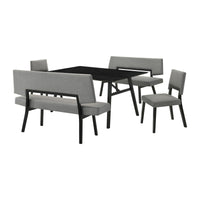 Channell 5 Piece Black Wood Dining Table Set with Benches in Charcoal Fabric