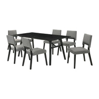 Channell 7 Piece Black Wood Dining Table Set with Charcoal Fabric