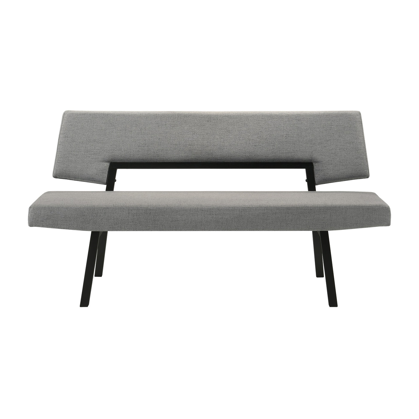 Channell Wood Dining Bench in Black Finish with Charcoal Fabric