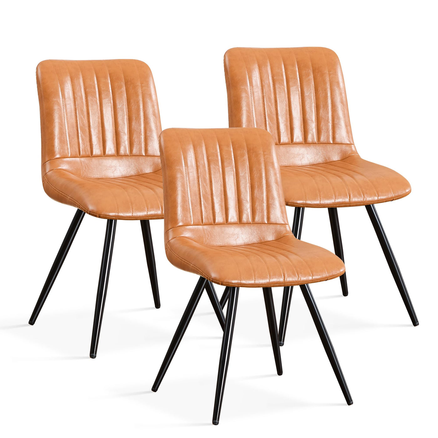 Choairy Dining Chairs Set Of 3, Modern Dining Chairs With Thick Cushions, Pu Leather Upholstered Kitchen Dining Room Chairs With Metal Legs For Dining Living Room (Caramel)