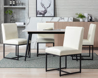 Cimota Cream Leather Dining Chairs Set Of 4, Modern Dining Room Chairs Upholstered Armless Guest Side Chair With Black Base For