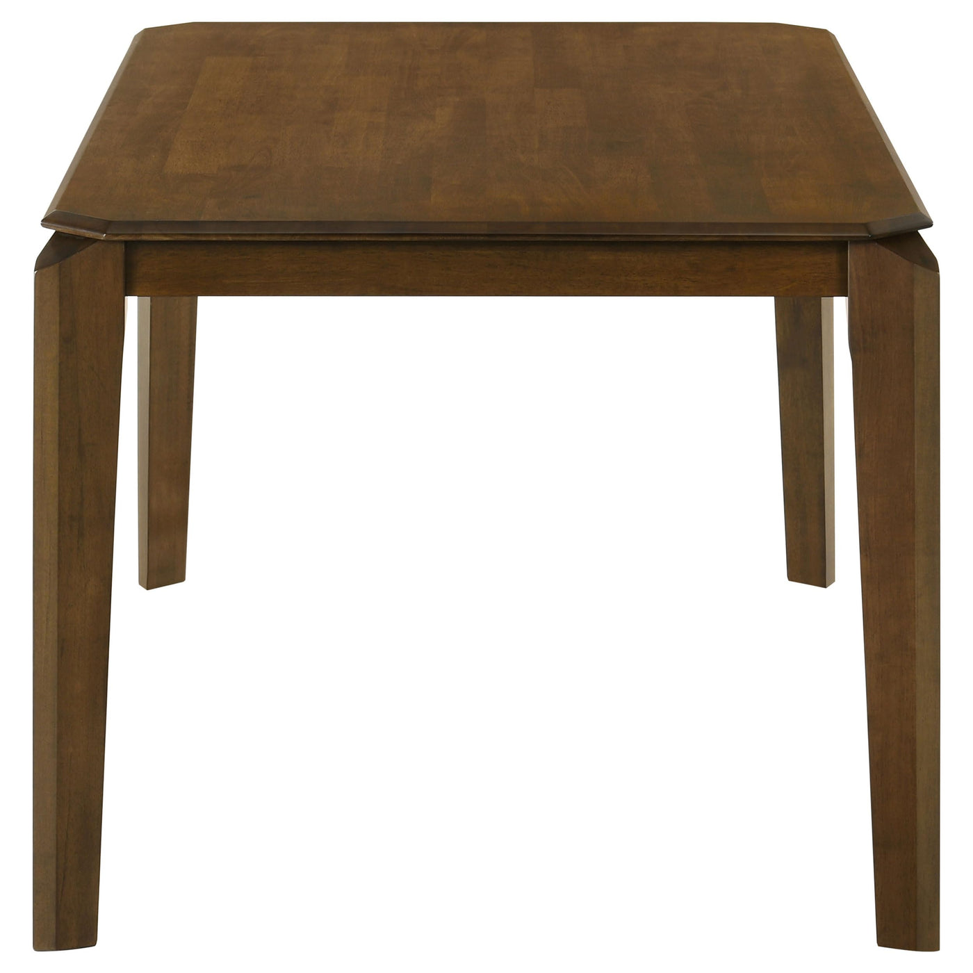 Includes: One (1) dining table | Artisan details enhance the eye-catching look of a modern rectangular dining table | Dark brown finishing highlights wood grain details and offers rich, refined character | Gently tapered, slightly flared legs with an angular look and feel create engaging visual depth | Table edge features a 45-degree chamfered design that adds angular flair to match legs | Made from Asian hardwood for excellent quality, durability, and a refined look and feel