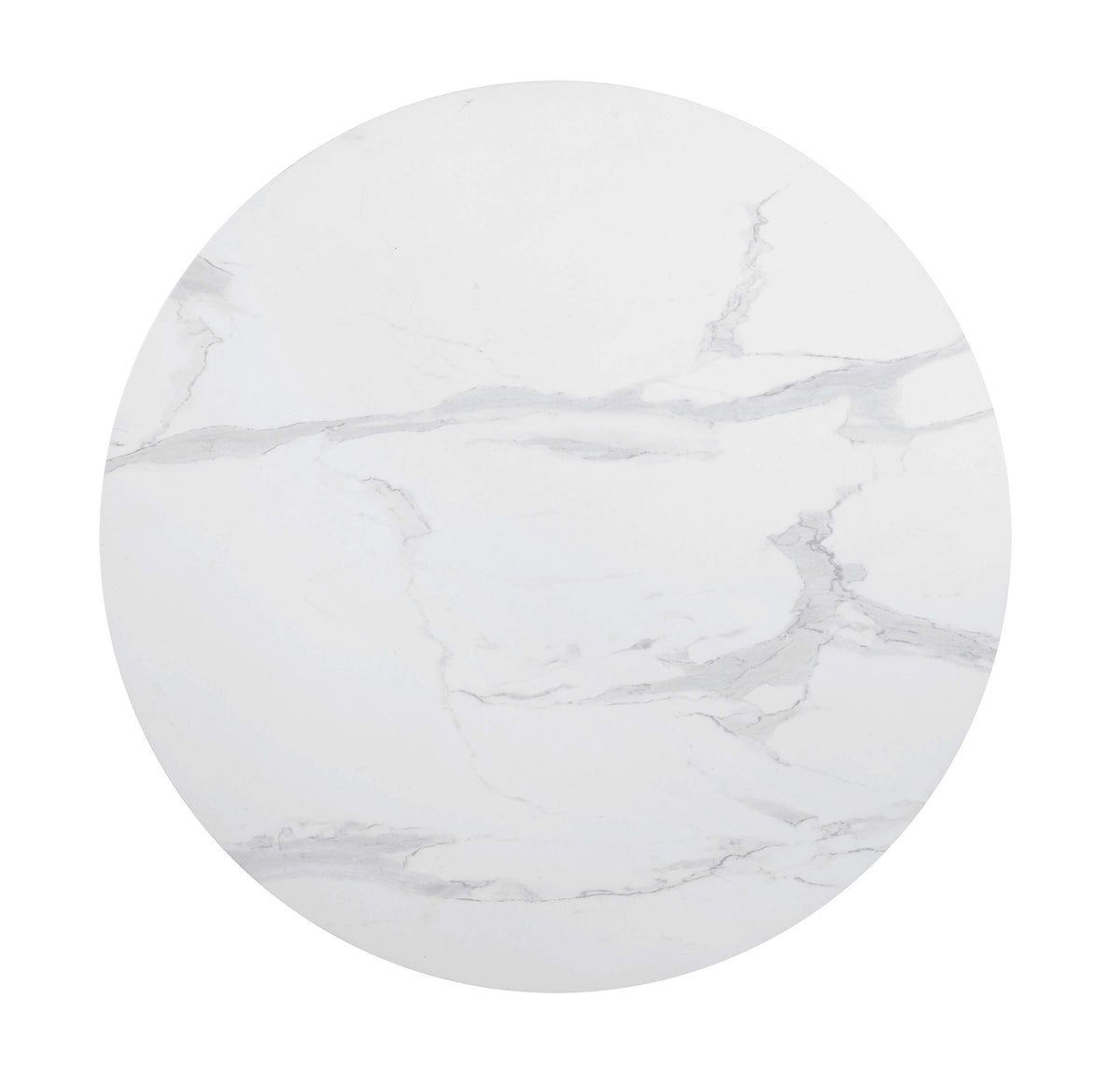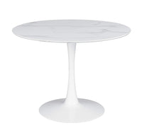 Based off an iconic furniture design, this round dining table is perfect for compact dining spaces. Its bright white faux marble top and metal base complement a variety of styles and color palettes. Plus, the tabletop has a white faux marble that makes it easy to clean up spills and food. Lend a retro-inspired look to a home with this tulip-shaped base. Seat up to four guests quite comfortably.