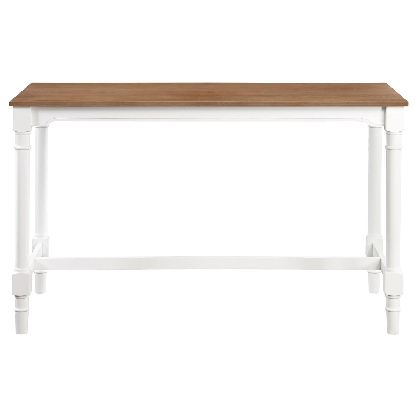 Includes: One (1) counter height table and four (4) counter stools | Modern farmhouse counter height dining table set is ideal in your compact kitchen or dining room | Table design features a crisp white base and a brown wood tabletop for warm contrast | Table and chair bases feature turned style legs and straight support braces for excellent stability | Features four backless counter stools, each with a padded seat with neutral beige upholstery | Counter height design is casual and inviting, perfect for a welcoming family space | Seamlessly accommodates and seats four individuals | Counter Height Dining Table : 60.00"W X 30.00"D X 36.25"H | Counter Stool : 20.00"W X 15.25"D X 25.50"H