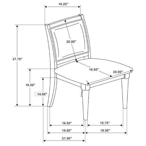 Includes: Two (2) side chairs | Dining side chair with padded seat and backrest for a comfortable dining experience | Finished in a dark walnut tone, bringing warmth to any room | Molded geometric design on the backrest adds visual texture and elegance | Sleek and versatile design suitable for modern or transitional spaces | Sturdy construction with solid wood and polyresin ensures durability