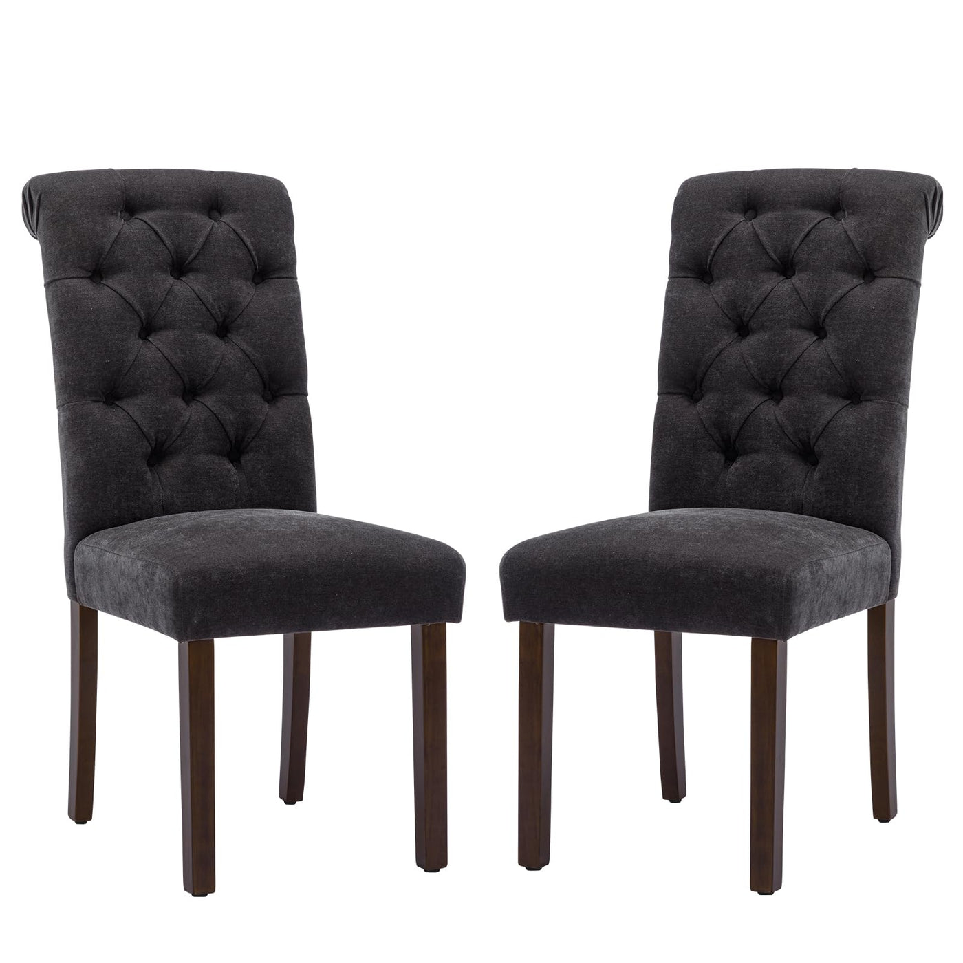 Looking For A Formal & Elegant Chair For Your Space?Then You Must Not Miss This Fashionable Dining Chair Set. The Upholstered Dining Chair Is Built To Last, Made Of Linen-Look Fabric Stretched On A Durable Solid Wood Frame With A Thick Cushion. The Dining Chair Looks Very Fashionable, Which Can Match Any Decor Theme, Perfect For Home, Restaurant, Caf , And Company. The Seat And Back Are Padded With High-Density Foam For A Great Comfortable Feeling And The Overall Wooden Frame Gives You Strong Support.Why We Love These Gorgeous Fabric Dining Chairs??Feature A Rolled Backrest And Button Tufting On The Back For A Classic Touch In Your Space.?Made Of Linen-Look Fabric Stretched On A Durable Solid Wood Frame With A Thick Cushion.?Boost Its Style Quotient Is The Deep Button Tufting And Solid Wood Legs.?Ergonomic High Backrest Perfectly Adapts To Your Body And Relieve Fatigue?Set Of 6 Chairs Are Perfect For Family Unions Or Inviting Your Friends For Dinnerspecification:Overall Size: 39.57'' H X 17.32'' W X 26.97''Dseat Size: 17.3'' W X 17.72'' D X 19.88'' Hweight Capacity: 250Lbsupholstery Material: Polyester/Polyester Blendleg Material: Solid Woodproduct Care:Wipe Clean With A Dry Cloth, Do Not Use Strong Liquid Cleanersbeautiful Addition To Updated Dining Room/Office. Get Your Perfect Match Today!