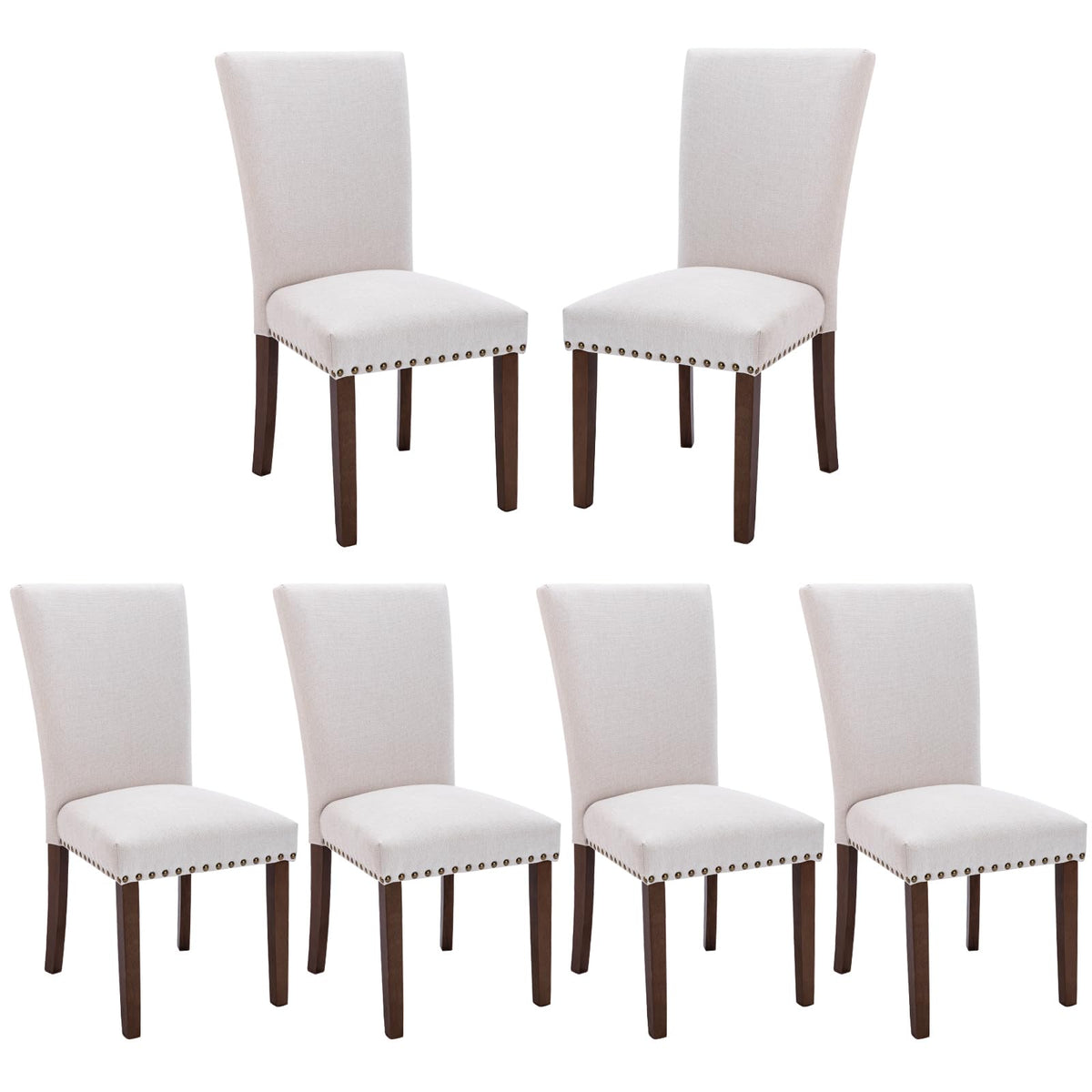 Colamy Upholstered Fabric Dining Chairs Set Of 6, High Back Padded W/Nailed Trim & Solid Wood Legs, Classic Parsons Side Chair For Home/Kitchen/Living Room-Beige