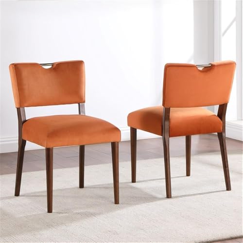 The stunning Bonito 7 Piece dining set is the perfect addition to your kitchen or small dining room! The table, measuring 59 inches in length, comfortably seats six people, making it ideal for family dinners or intimate gatherings with friends. Crafted from high-quality Birch veneer, the table boasts floor glides, kiln-dried hardwood legs, and a walnut finish. The dining chairs feature a luxurious burnt orange velvet upholstery that is not only beautiful but also easy to clean, ensuring the longevity of your chairs for years to come. The built-in gold finished metal handle is both decorative and functional, which provides easy portability whenever you need it. The walnut finished wood frame only adds the required touch of elegance to this masterpiece. The comfortable seat cushion is thoughtfully designed with sinuous springs, providing added comfort during mealtime. Upgrade your dining experience and treat yourself to the Bonito Burnt Orange Velvet 7-piece Dining Set in Walnut Finish today! This listing includes 1 table and 6 chairs.
