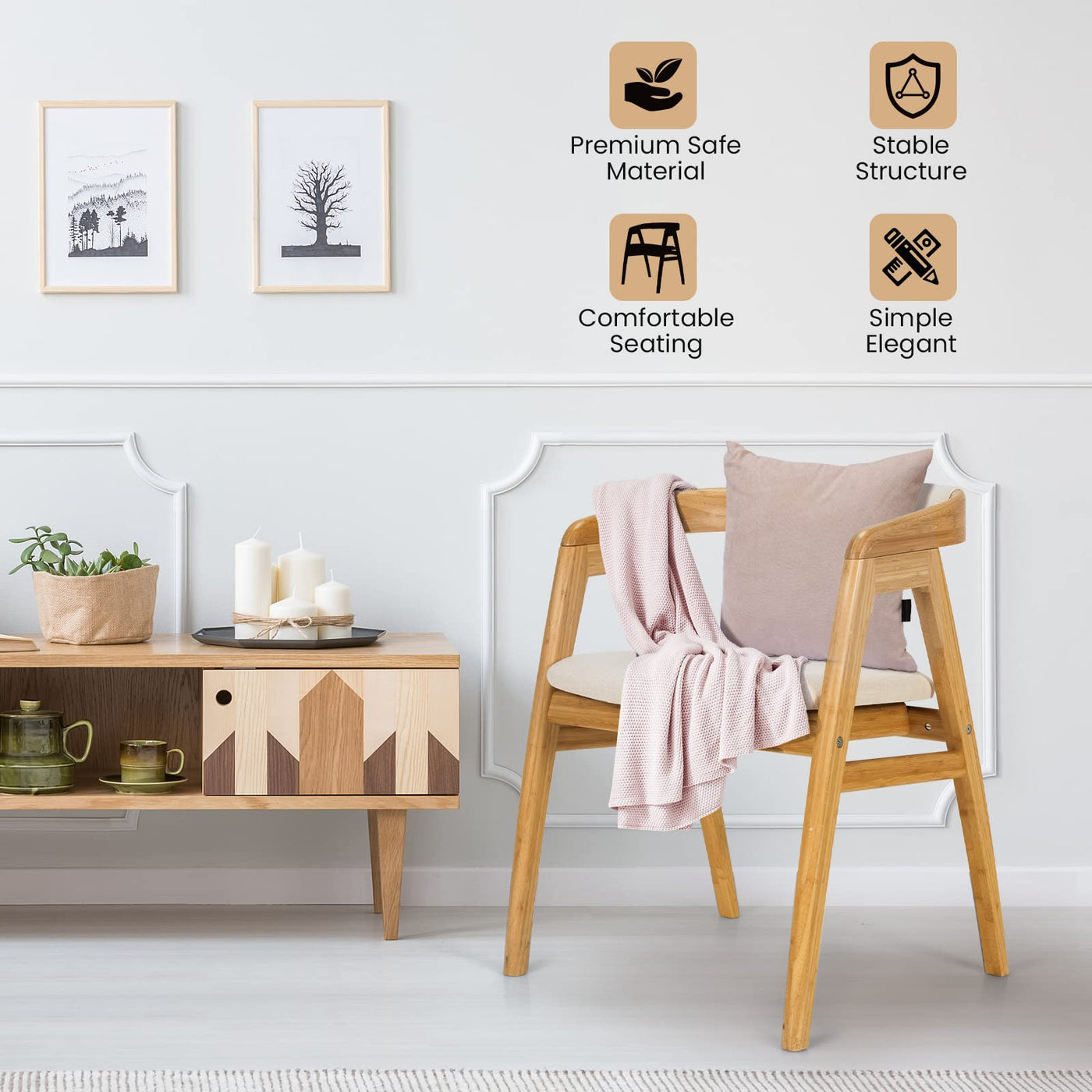 Costway Bamboo Accent Chair Set Of 2, Modern Painted Bamboo Leisure Chair W/Comfy Fiber Cushion, Curved Backrest, Solid Legs, Upholstered Armchair For Living Room, Bedroom, Dining Room, Natural (2)