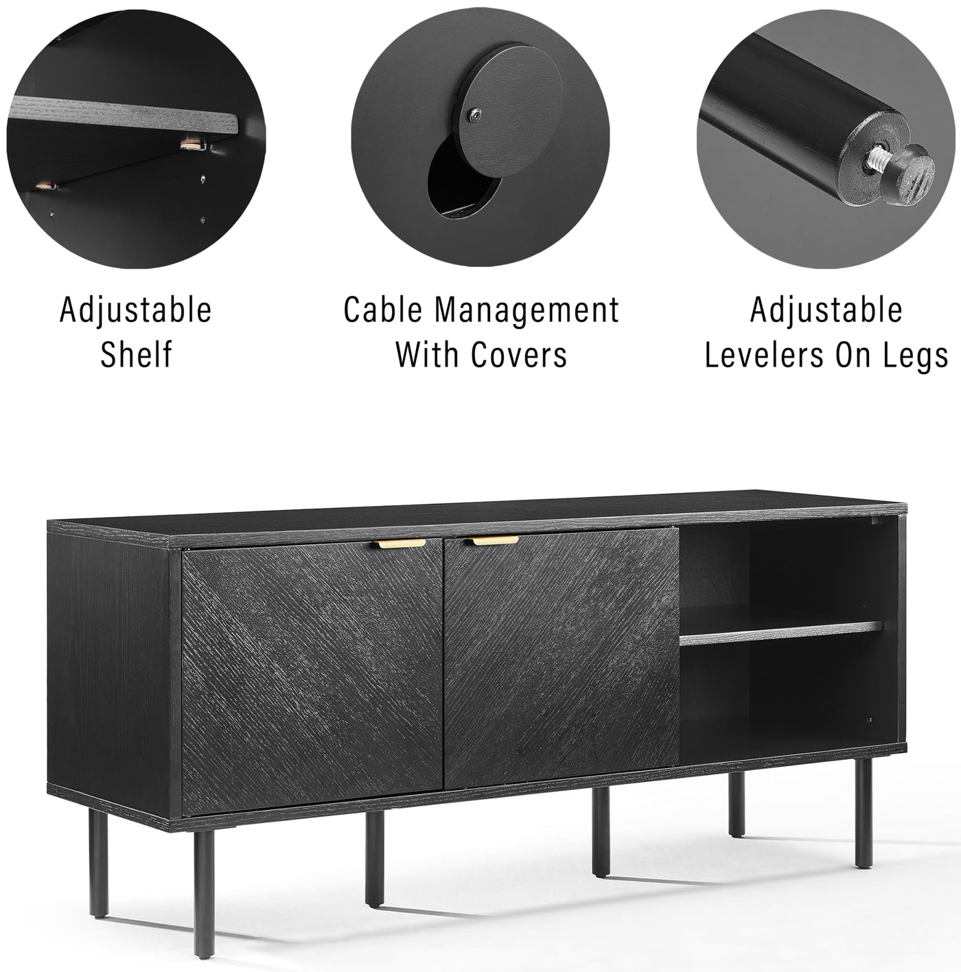 Crosley Furniture Brody Vinyl Record Storage Sideboard, Modern Media Console and Cabinet with Shelves, Black