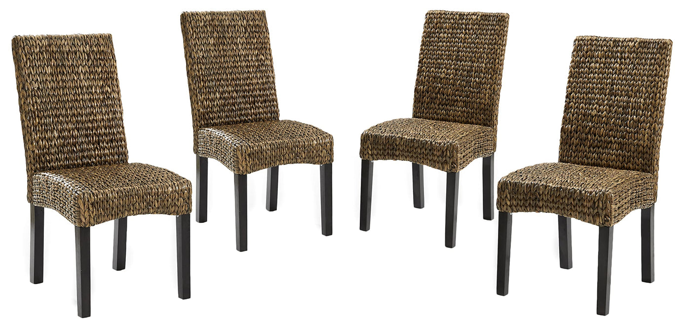 Crosley Furniture Edgewater Handwoven Natural Fiber Rattan Dining Chairs Set of 4, Seagrass