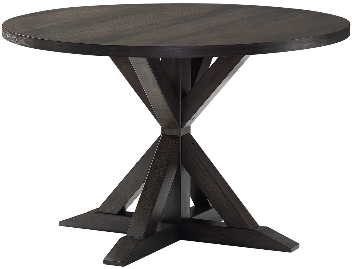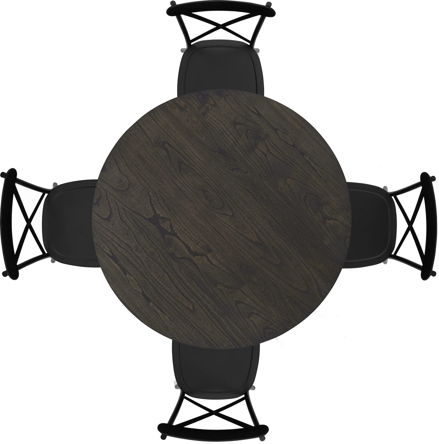 Bring modern farmhouse style to family gatherings with the Hayden Round Dining Set with Camille Chairs. Blending rustic wood and sturdy steel, this set features a round pedestal table surrounded by four all-metal x-back dining chairs. Beautifully crafted with intersecting legs, the table's pedestal base makes the Hayden 5pc Round Dining Set a timeless centerpiece for your dining room.
