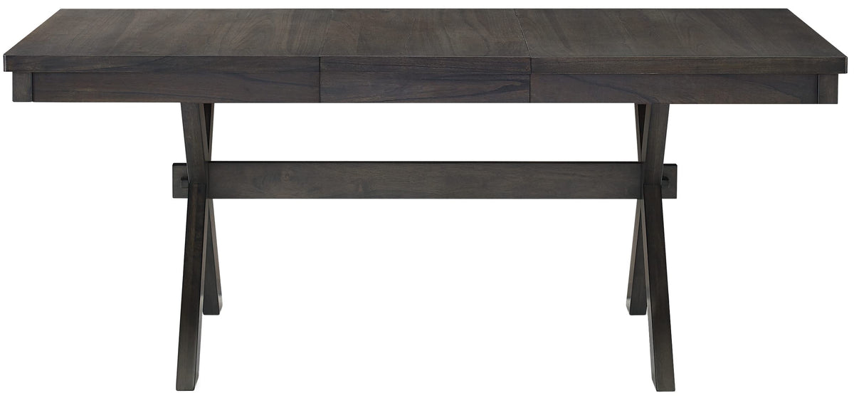 Sure to be the focal point of your modern farmhouse decor, the Hayden Dining Table brings rustic style to family gatherings. Featuring an 18” extension leaf, this table expands to comfortably accommodate up to six diners. The trestle base of the Hayden Dining Table showcases x-shaped legs, creating a sturdy structure sure to last for years to come.