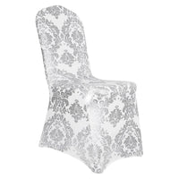 Desirable Life Pack Of 1 Dining Chair Covers Bronzing Silver Flower Print Removable Washable Spandex Stretch Decorative Chair Slipcovers Set For Party Wedding Home Decorations - Silver+White