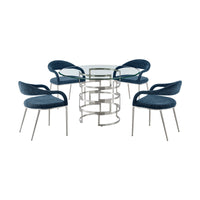 Diaz Morgan 5 Piece Round Glass Dining Table Set with Metal Frame and Upholstered Chairs