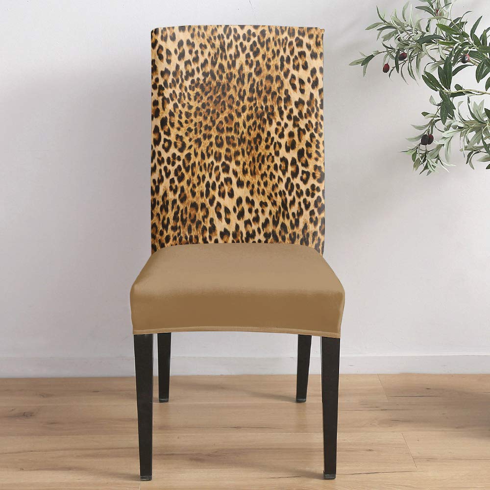 Dining Room Chair Covers Set Of 4 Wildlife Animal Leopard Print Removable Stretch Chair Protector Washable Kitchen Seat Slipcove