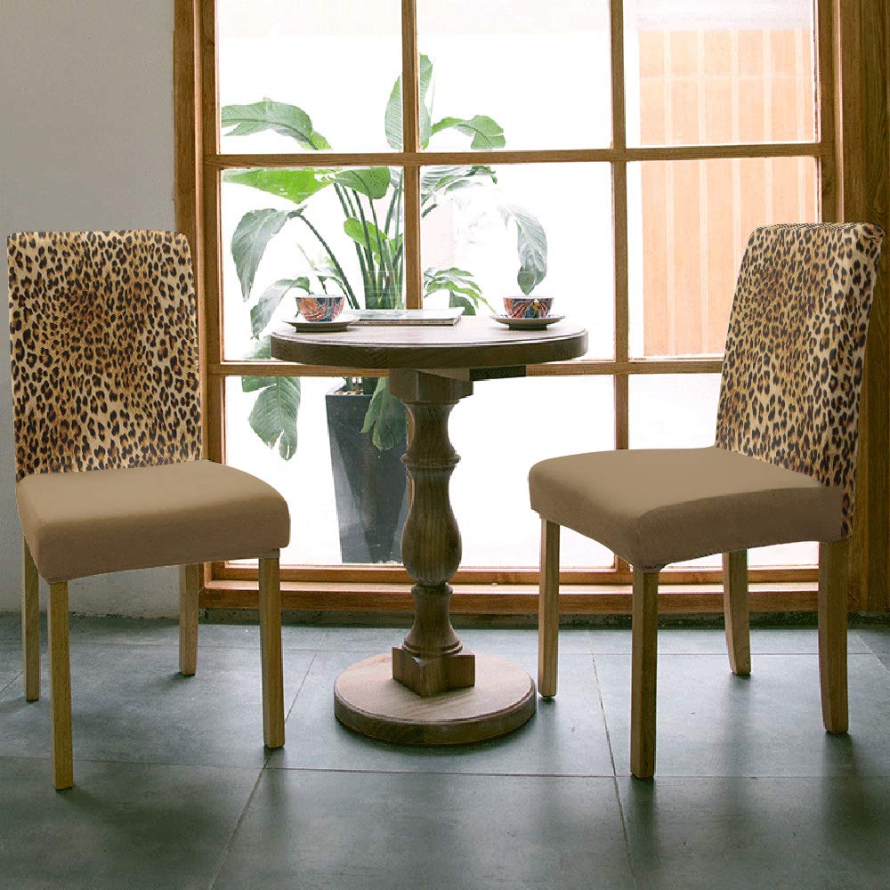 Q: Do these chair covers have any special design features?A: Absolutely! These chair covers feature a stylish leopard print pattern that adds a fashionable touch to your dining area. They are designed not only to protect your chairs but also to enhance your home decor with seasonal and trendy designs.