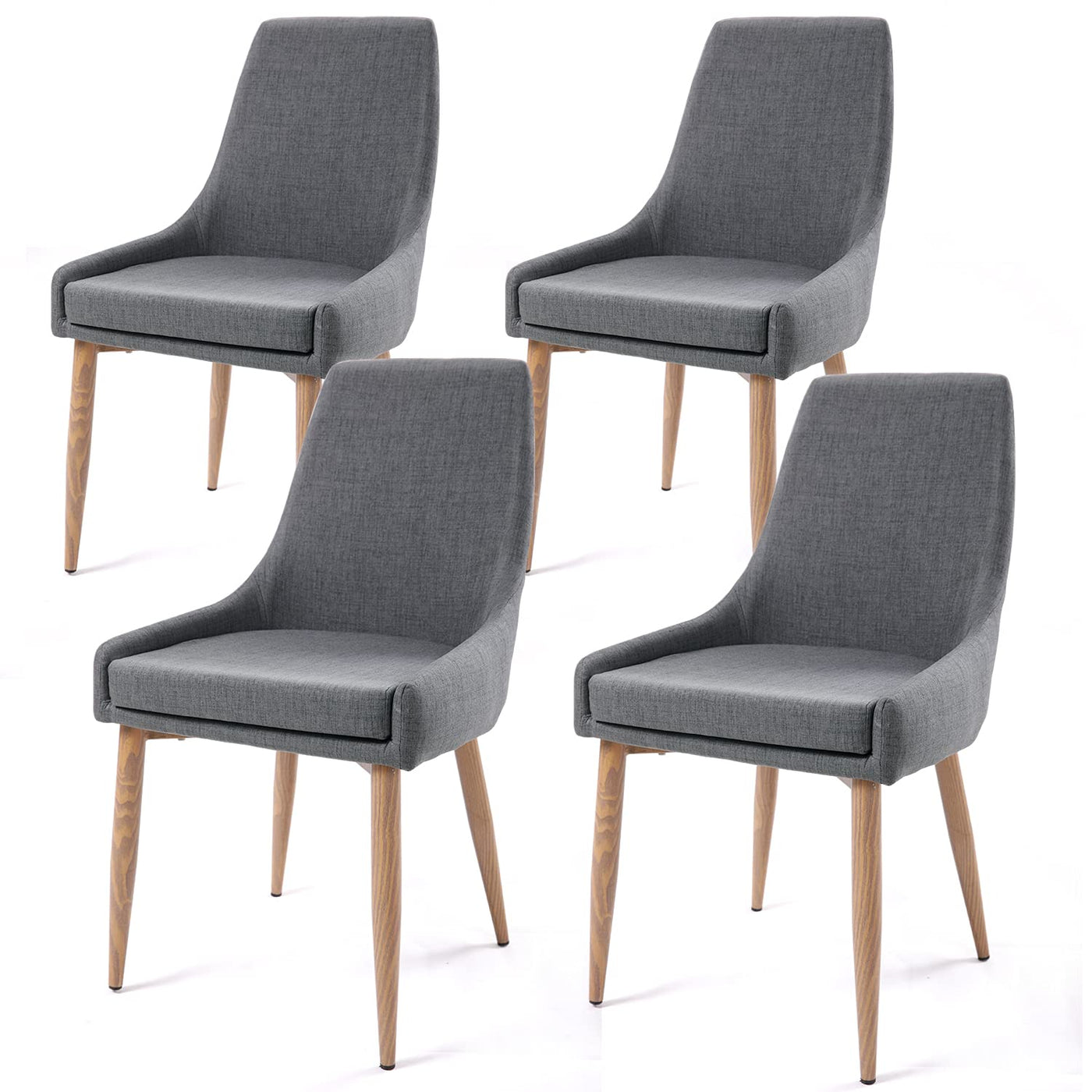 E&D Furniture Living Room Chair Set Of 4 Accent Chairs Dark Grey Fabric Upholstered Comfy Chairs For Kitchen And Dining Room Met