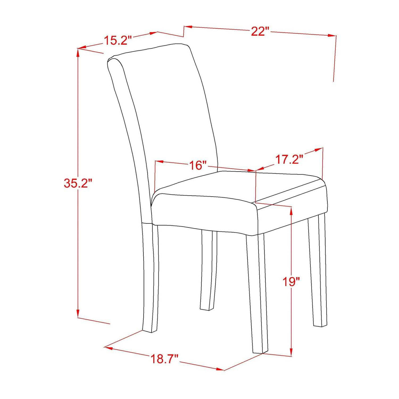 EAST WEST FURNITURE - AMAB5-BCH-61 - 5-PC KITCHEN DINING TABLE SETThis 5-piece kitchen dining set boasts a sophisticated and streamlined appearance, exuding an air of elegance and luxury that seamlessly integrates with any interior design scheme. The table's Cherry Round Table top and Black Wooden Pedestal Leg, along with the parsons chairs' Baked Bean PU Leather Seat and Black Wooden 4 Legs, offer plush and cozy seating for up to four individuals. The dining set is crafted from premium-quality solid wood, ensuring its sturdiness and longevity for years to come. Its modern and stylish design adds to the charm and allure of your dining room. The package comes complete with comprehensive and easy-to-follow instructions, requiring no additional tools for assembly. Indulge in the exquisite and comfortable dining experience that the East West Furniture dining set provides.DINNER TABLE SET FEATURES: Material: Asian Hardwood Seat Material: PU Leather Table Shape: Round Top Table Top Color: Cherry Table Legs Color: Black Chair Legs Color: Black Chair Fabric Color: Baked Bean Chair Back Style: High Back Chair Weight Capacity: 300 Lbs. Table Dimensions: Length: 36; Width: 36; Height: 29.5. Chair Dimensions: Length: 22; Width: 17.2; Height: 35.2.Include in this Package: A Modern Dining Table and 4 Upholstered Dining Chairs.