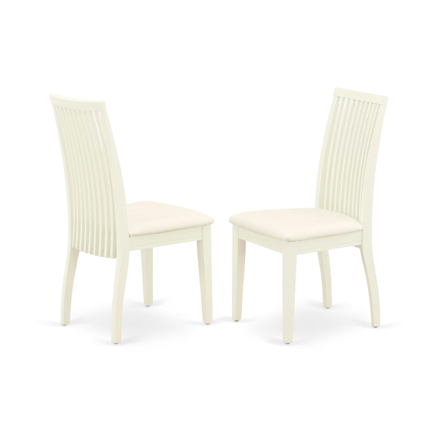 EAST WEST FURNITURE - AMIP3-LWH-C - 3-PC MID CENTURY DINING SETThe sophisticated 3-piece dining room set includes a modern kitchen table and 2 matching dining room chairs, adding an elegant touch to any room with its modern design that seamlessly complements any decor. The contemporary slatted back of the wooden chair beautifully blends with the Linen Fabric seat, creating a sophisticated appeal. The beautiful dining chair boasts a soft Linen Fabric Seat with spring support, comfortable padded cushion, and solid natural wood frame, overflowing in both quality and design, making it a perfect addition to your decor. The wooden table is designed in a classical style, with a linen white color that matches the wood dining chair, making it even more attractive. The spacious tabletop crafted from high-quality Rubber Wood material ensures heightened toughness and long-lasting use. Designed with easy and fast assembly in mind, each set comes conveniently packed with easy-to-follow instructions and all necessary tools included. Additionally, cleaning this dining room table set is a breeze with a damp cloth and furniture cleanser due to its smooth brush finish. Enjoy the quality and design of East West Furniture with this sophisticated dining room set.PRODUCT FEATURES: Seat Material: Linen Fabric Color: Linen White Chair Back Style: Slatted Back Dimension of Table: Length: 36; Width: 36; Height: 29.5. Chair Dimension: Length: 21; Width: 18; Height: 39.Include: 2 Wood Dining Chair and A Dining Table.