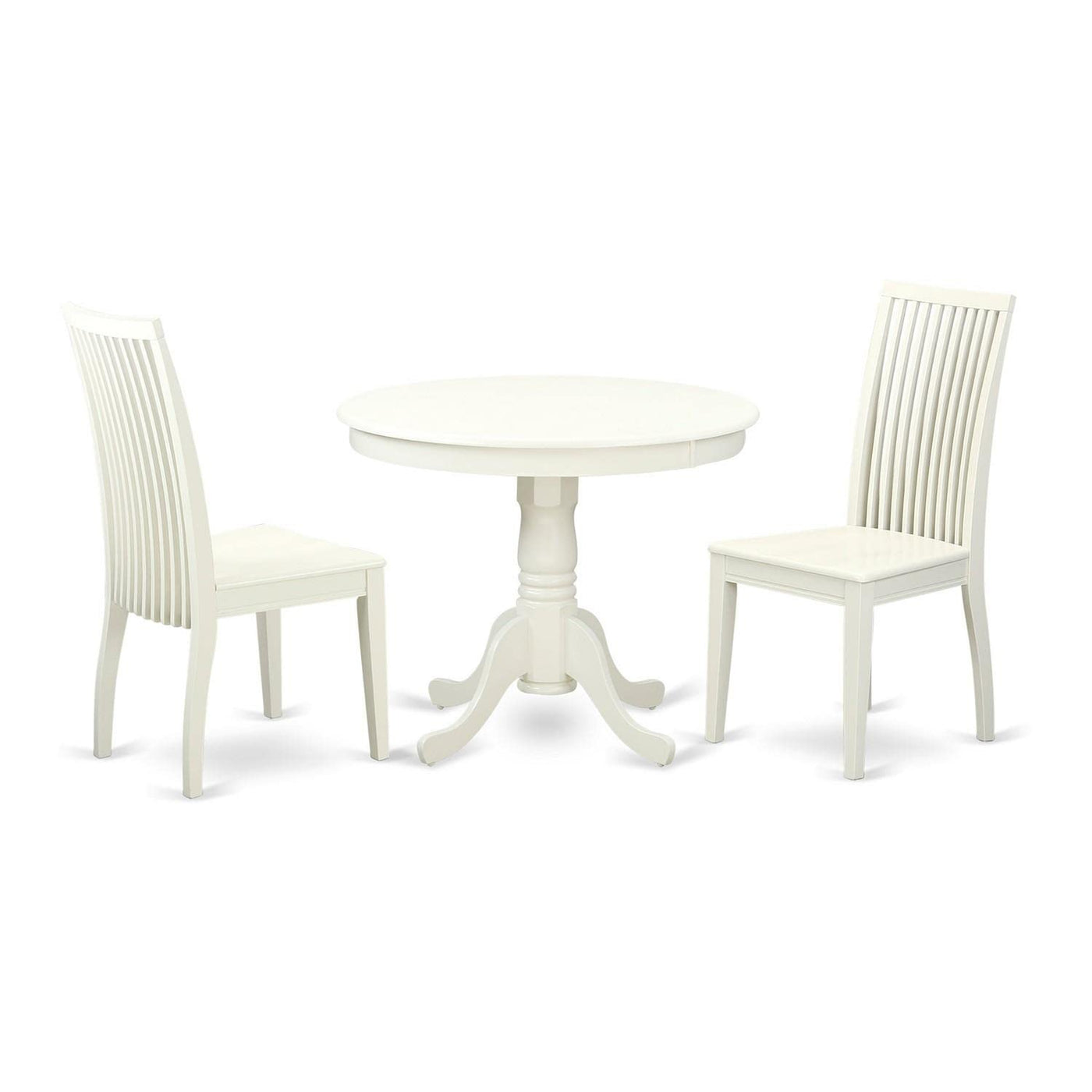 East West Furniture Anip3-Lwh-W 3 Piece Modern Dining Table Set Contains A Round Kitchen Table With Pedestal And 2 Dining Room Chairs, 36X36 Inch, Linen White