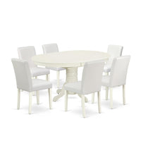 East West Furniture Avab7-Lwh-64 7 Piece Dining Room Furniture Set Consist Of An Oval Wooden Table With Butterfly Leaf And 6 White Faux Leather Parson Dining Chairs, 42X60 Inch, Linen White