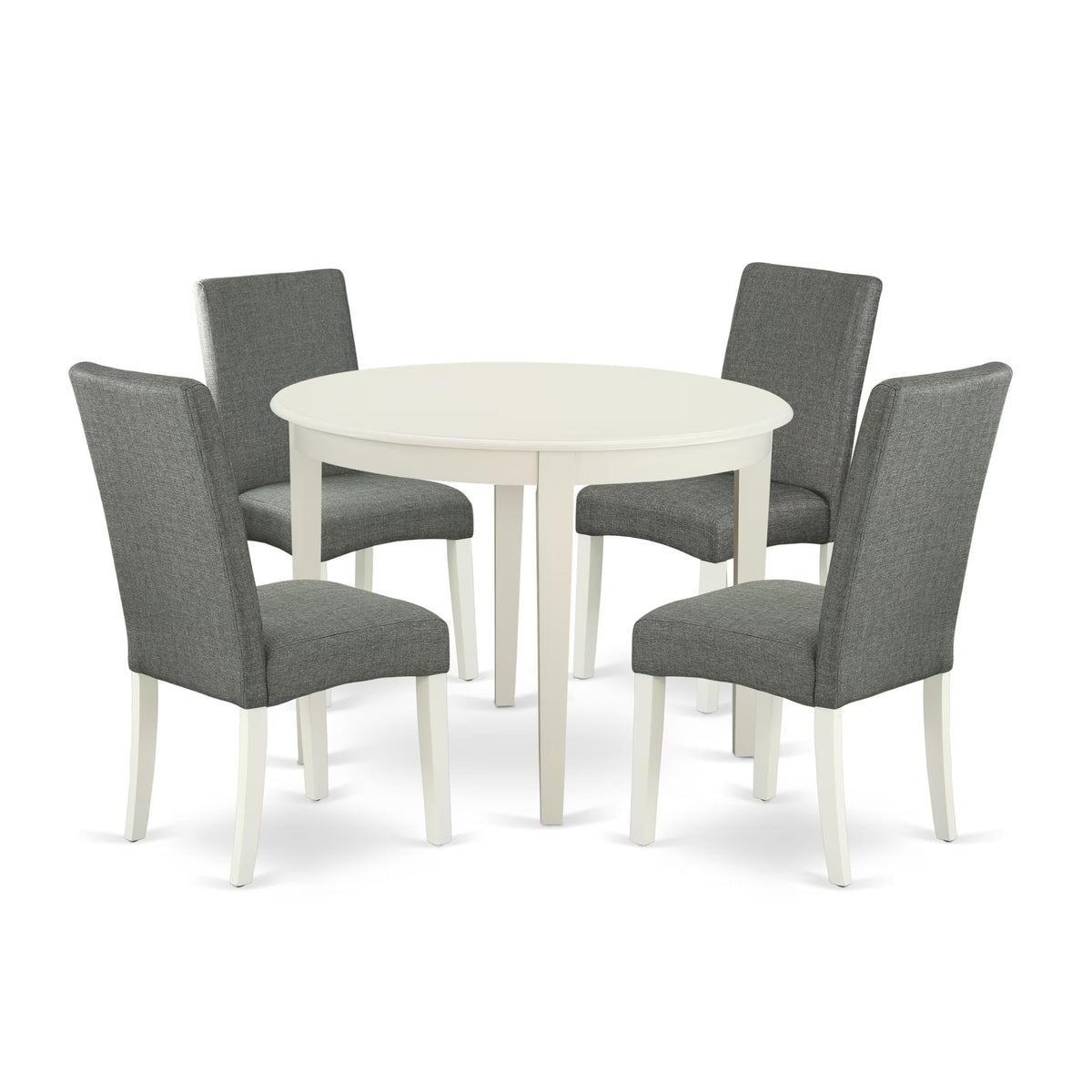 East West Furniture - Bodr5-Lwh-07 - 5-Piece Dining Table Setintroducing A Magnificent 5-Piece Mid-Century Dining Room Set Designed To Elevate The Allure Of Your Dining Room. This Kitchen Set Comprises A Round Wooden Kitchen Table With Sturdy Four Legs, And 4 Stunning Kitchen Chairs Featuring Premium-Quality Linen Fabric Upholstery For Complete Comfort And A Delightful Sitting Experience. The Modern Dining Table Set Comes In A Charming Linen White Hardwood Modern Design, While The Elegant Grey Linen Fabric Kitchen Chairs Add A Touch Of Sophistication To Your Dining Room. The Set Is Crafted Using Asian Wood, Also Known As Rubber Wood, For Superior Durability And Finished By Highly Experienced Carpenters For A Smooth And Refined Look. Assembly Is A Breeze If You Follow The Instructions Provided In The Package. The Kitchen Table Set Is Also Effortless To Clean With Any Furniture Cleaner, Ensuring A Fresh Look At All Times. Experience Timeless Elegance And Unmatched Comfort With This Enchanting Small Dining Set.Product Features: Fabric: Linen Fabric Fabric Color: Grey Wood Color: Linen White Dining Table Dimension: Length: 42; Width: 42; Height: 30. Dining Chairs Dimension: Length: 24.2; Width: 19.2; Height: 39.Package Include: 4 Parson’S Chairs And Wood Dining Table.
