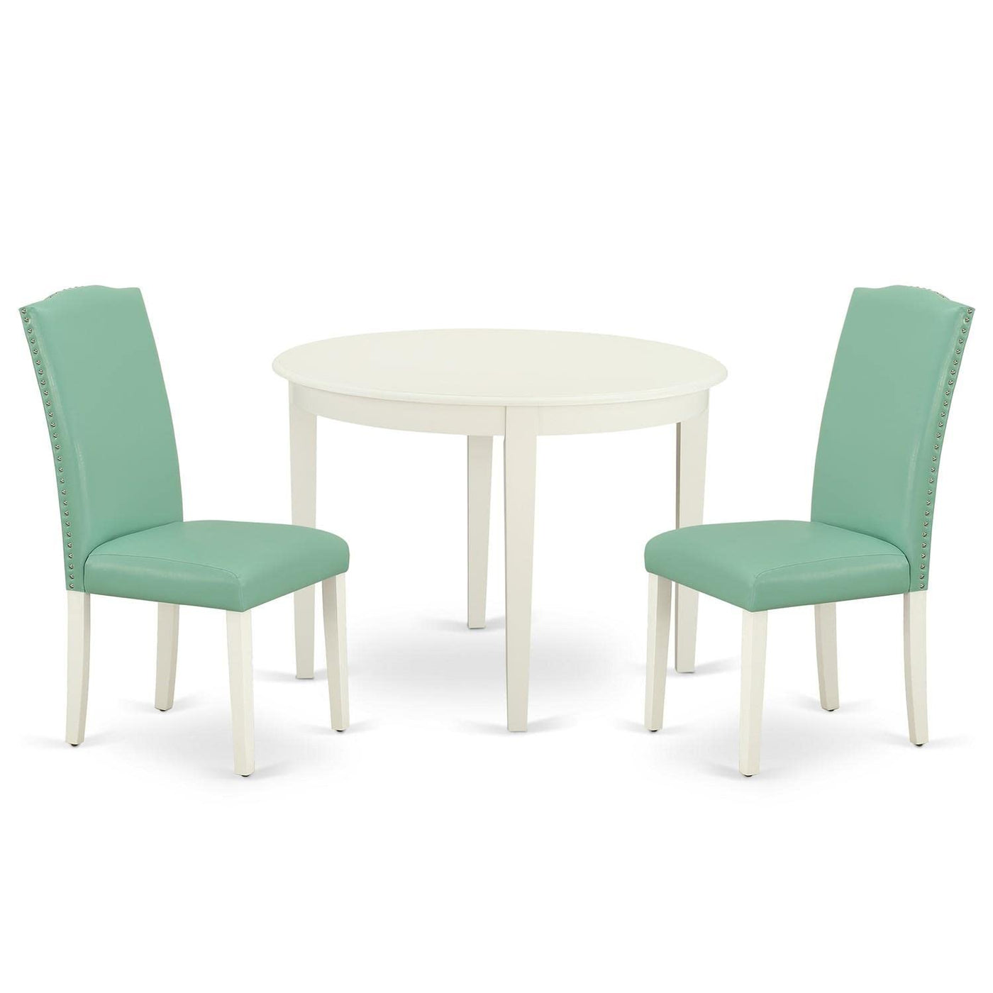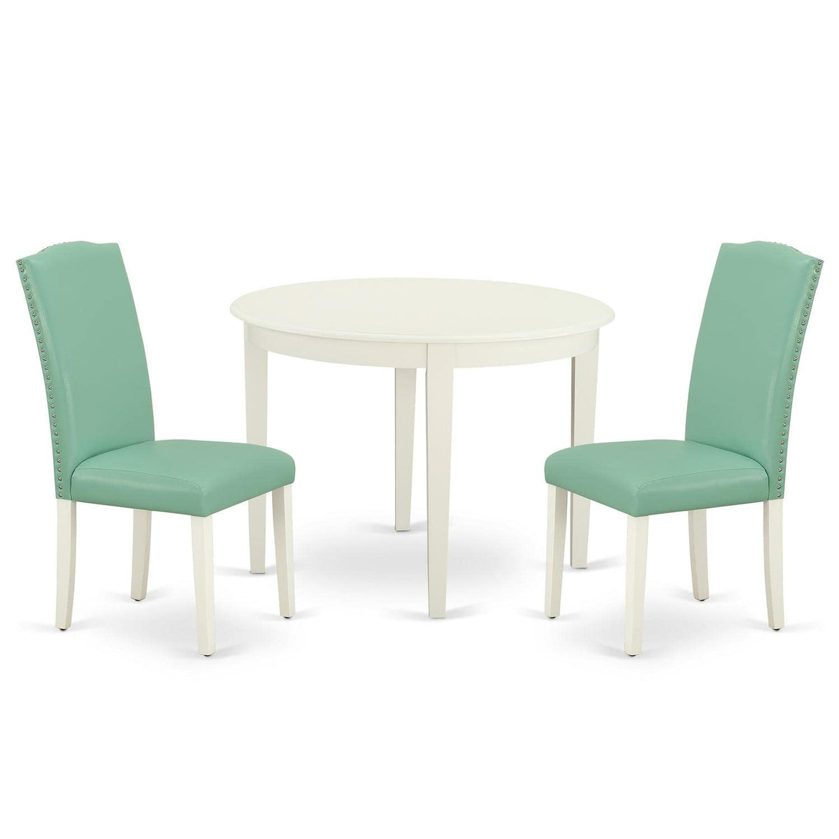 East West Furniture Boen3-Lwh-57 3 Piece Dining Room Table Set Contains A Round Kitchen Table And 2 Pond Faux Leather Upholstered Parson Chairs, 42X42 Inch, Linen White