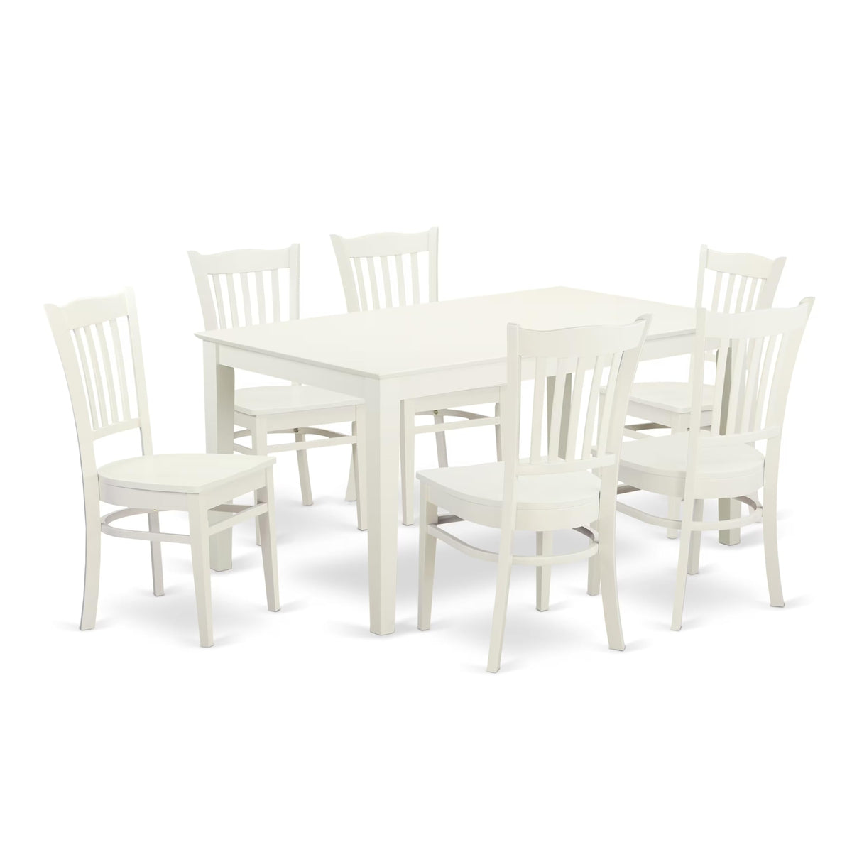 East West Furniture Cagr7-Lwh-W 7 Piece Dining Room Furniture Set Consist Of A Rectangle Dining Table And 6 Wood Seat Chairs, 36X60 Inch, Linen White